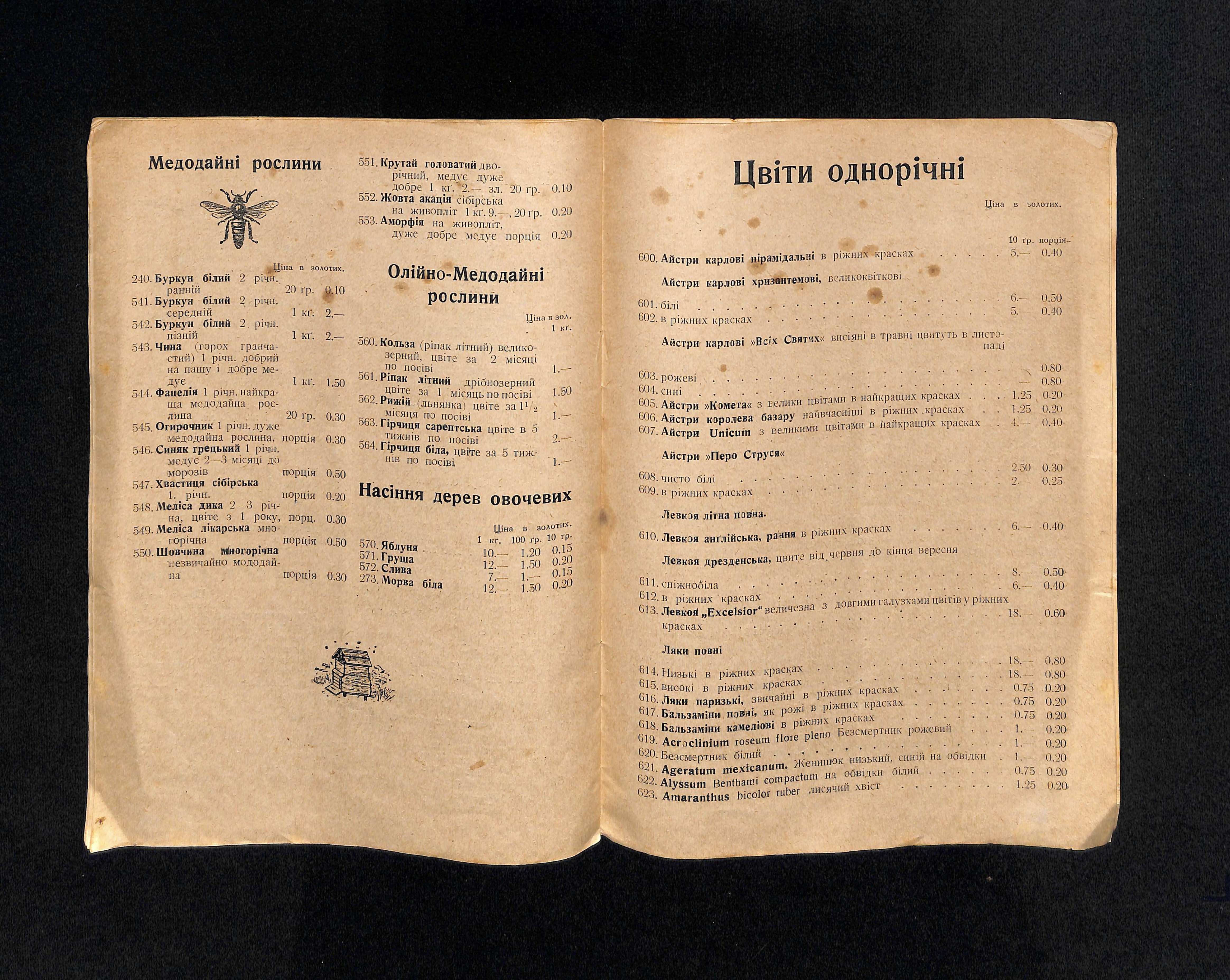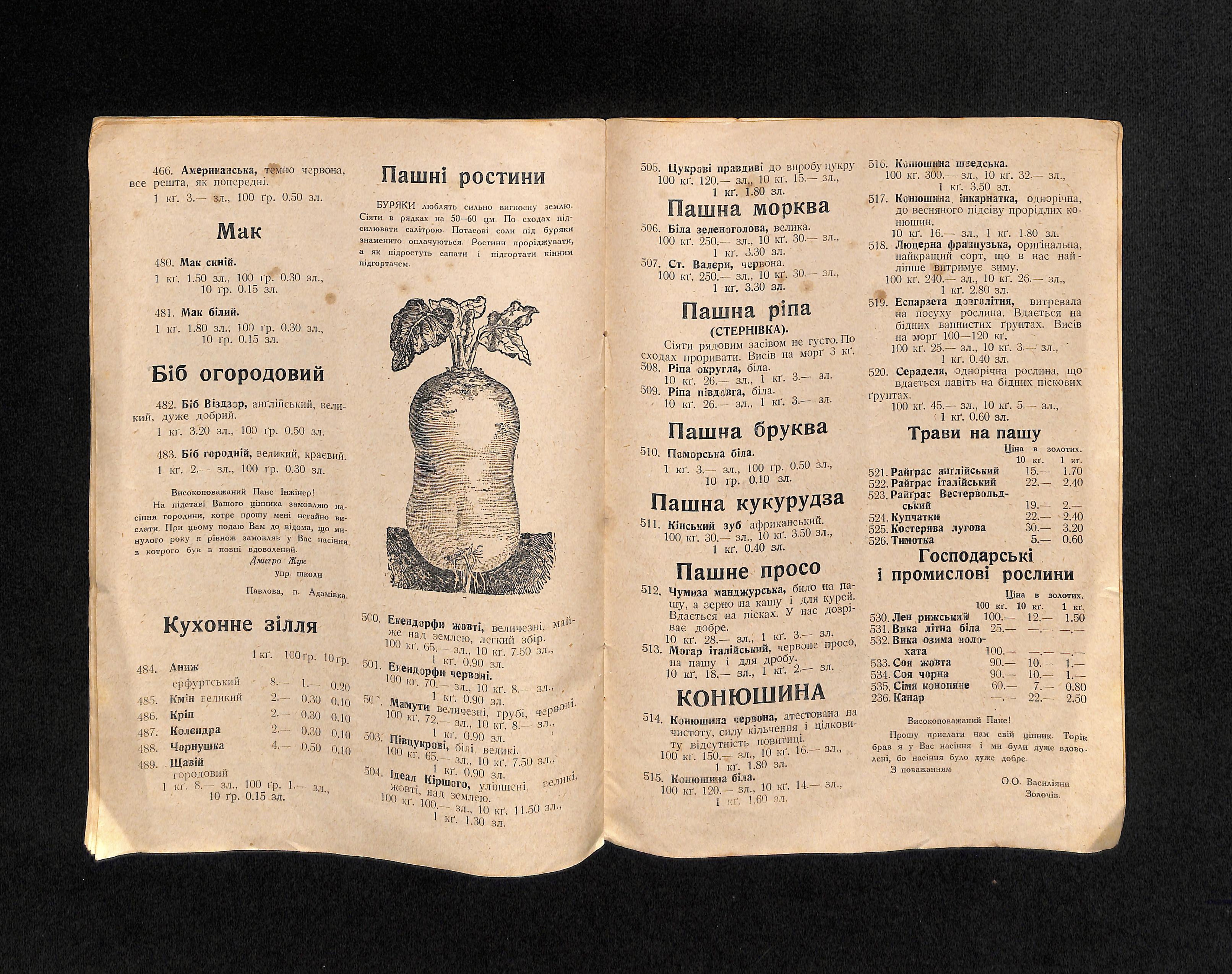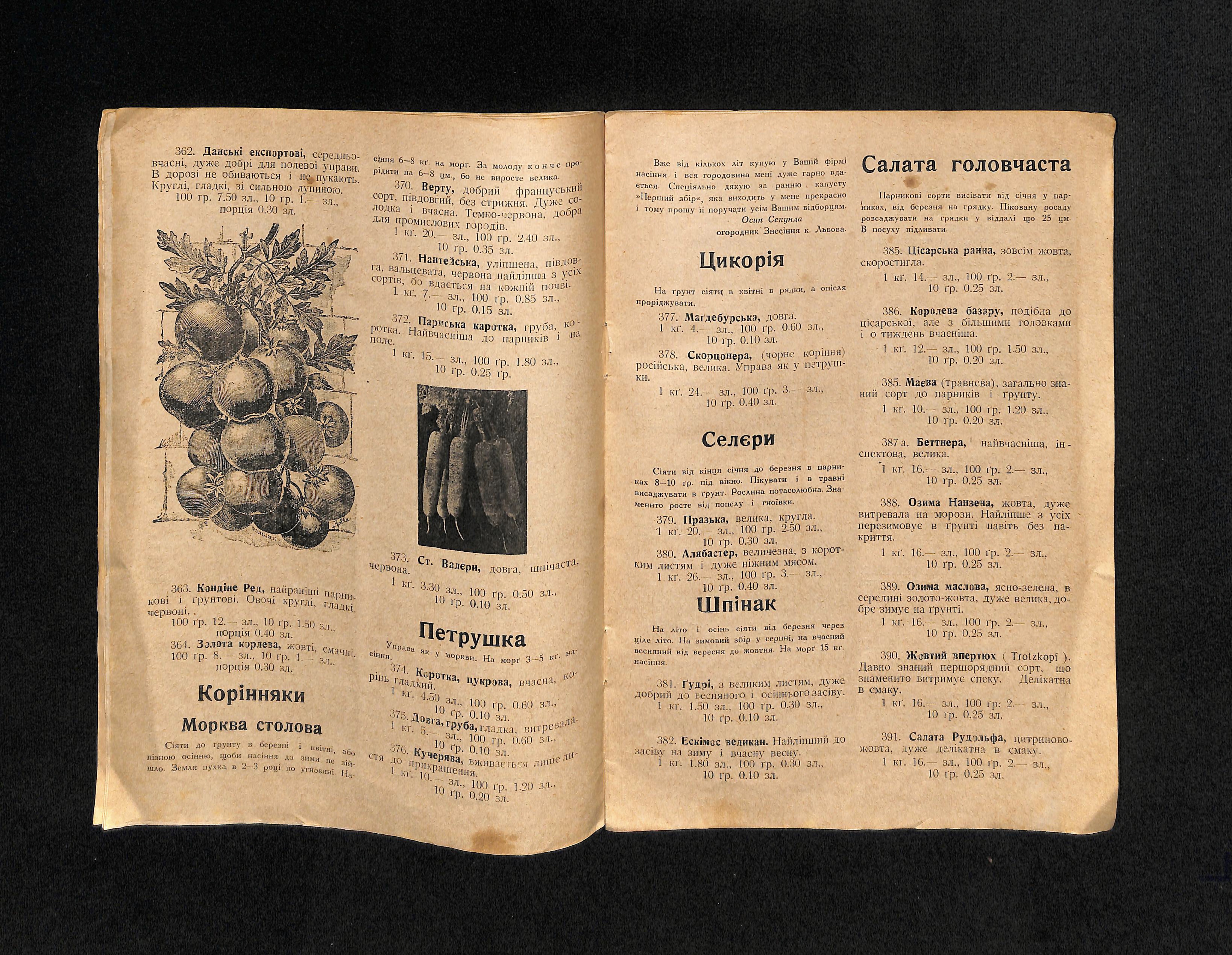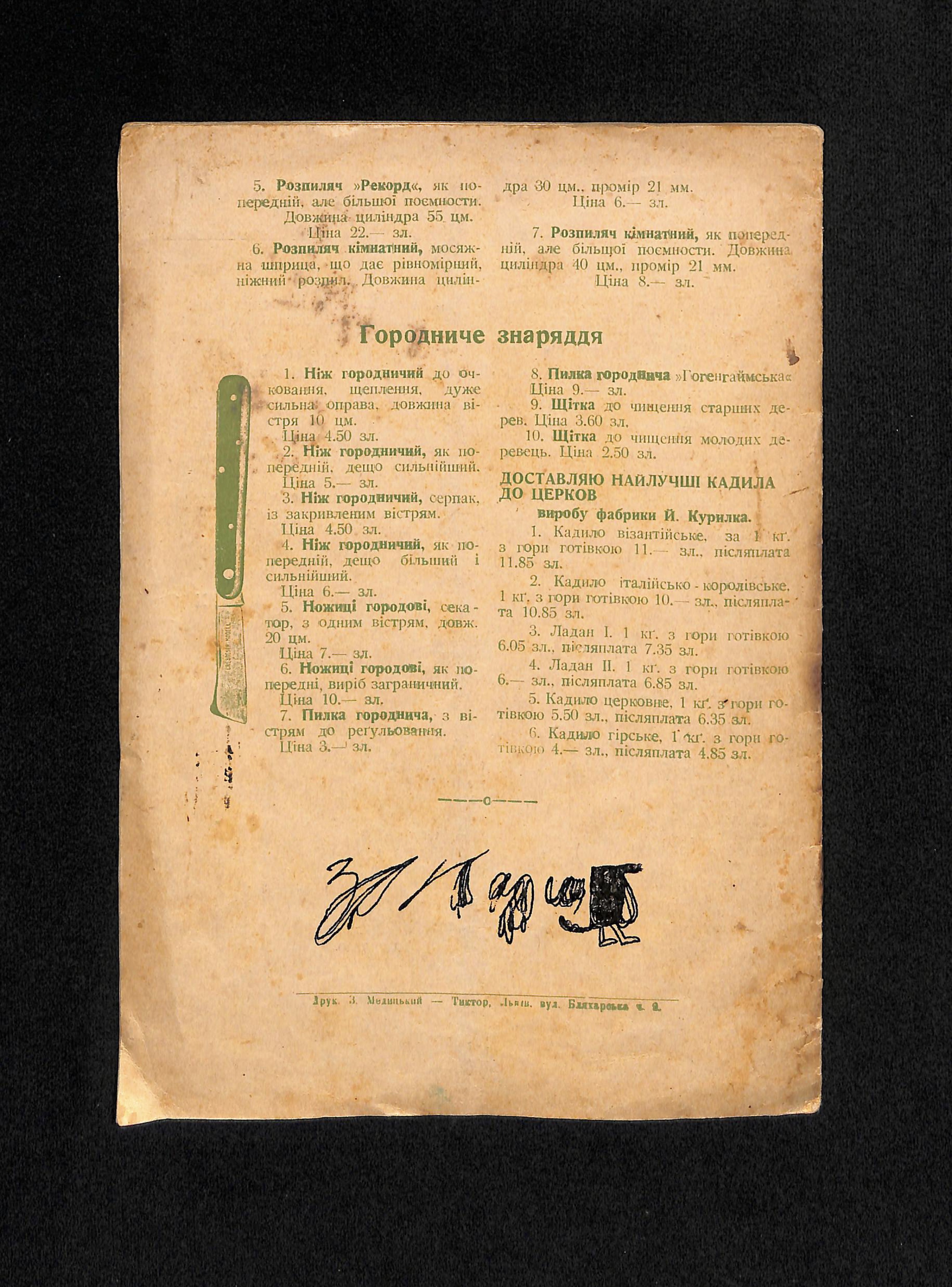 Інж. аґр. Богдан Попович (1936). Цінник насіння городини і квітів [Price list of vegetable and flower seeds]. USSR: Друк 3. Медицький - Тиктор.