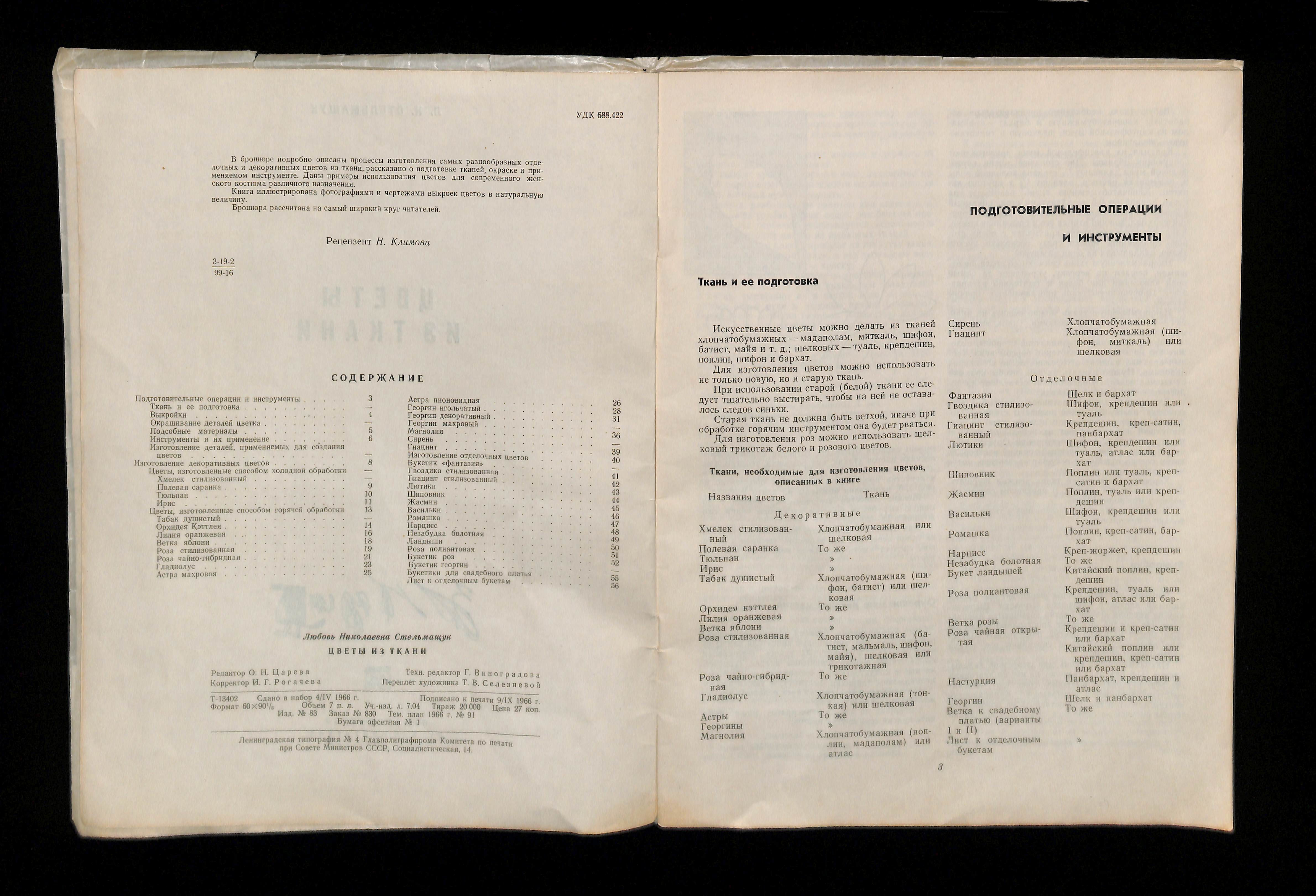Л. Н. Стельмащук (1966). Цветы из ткани [Flowers Made of Fabric]. USSR: Легкая индустрия.