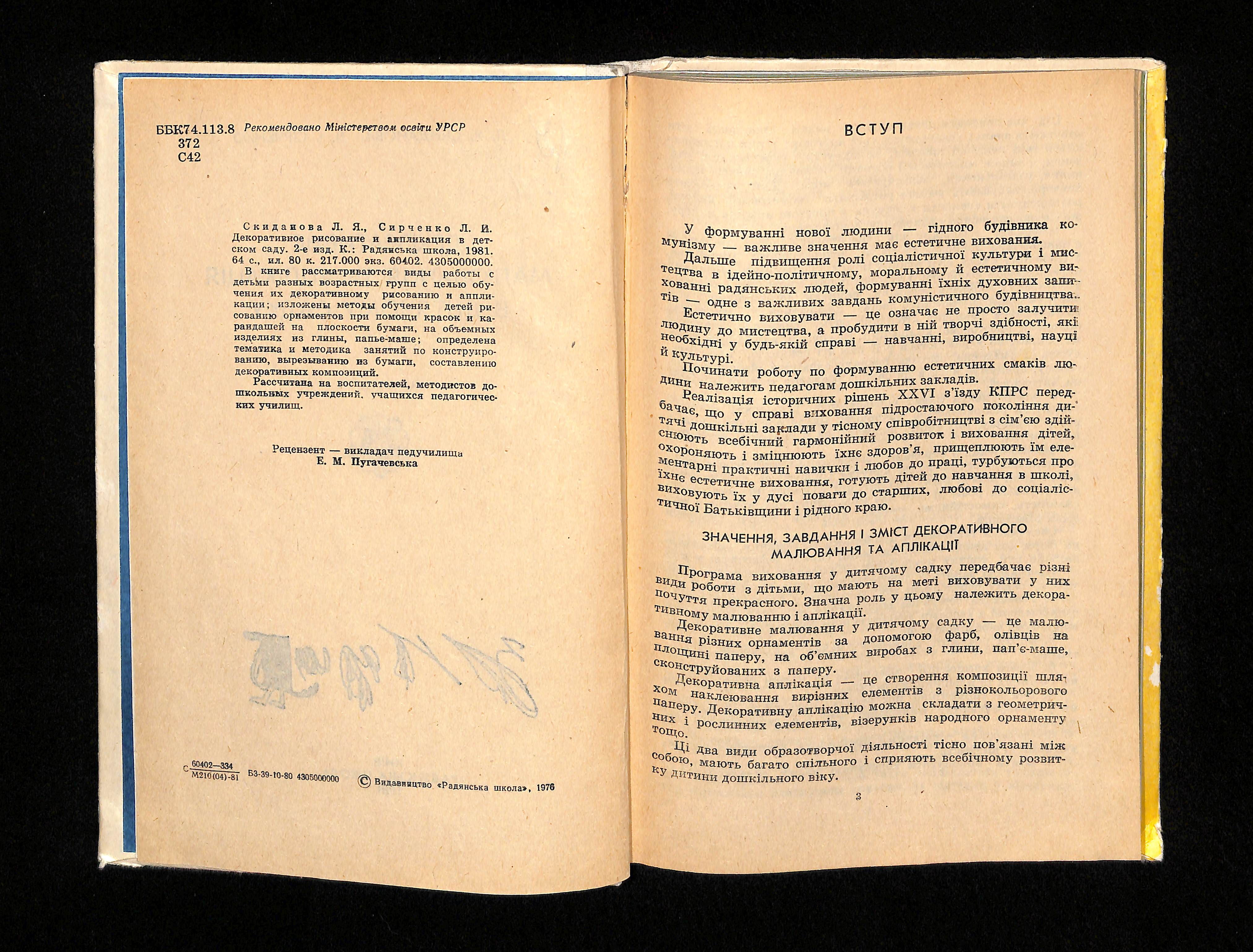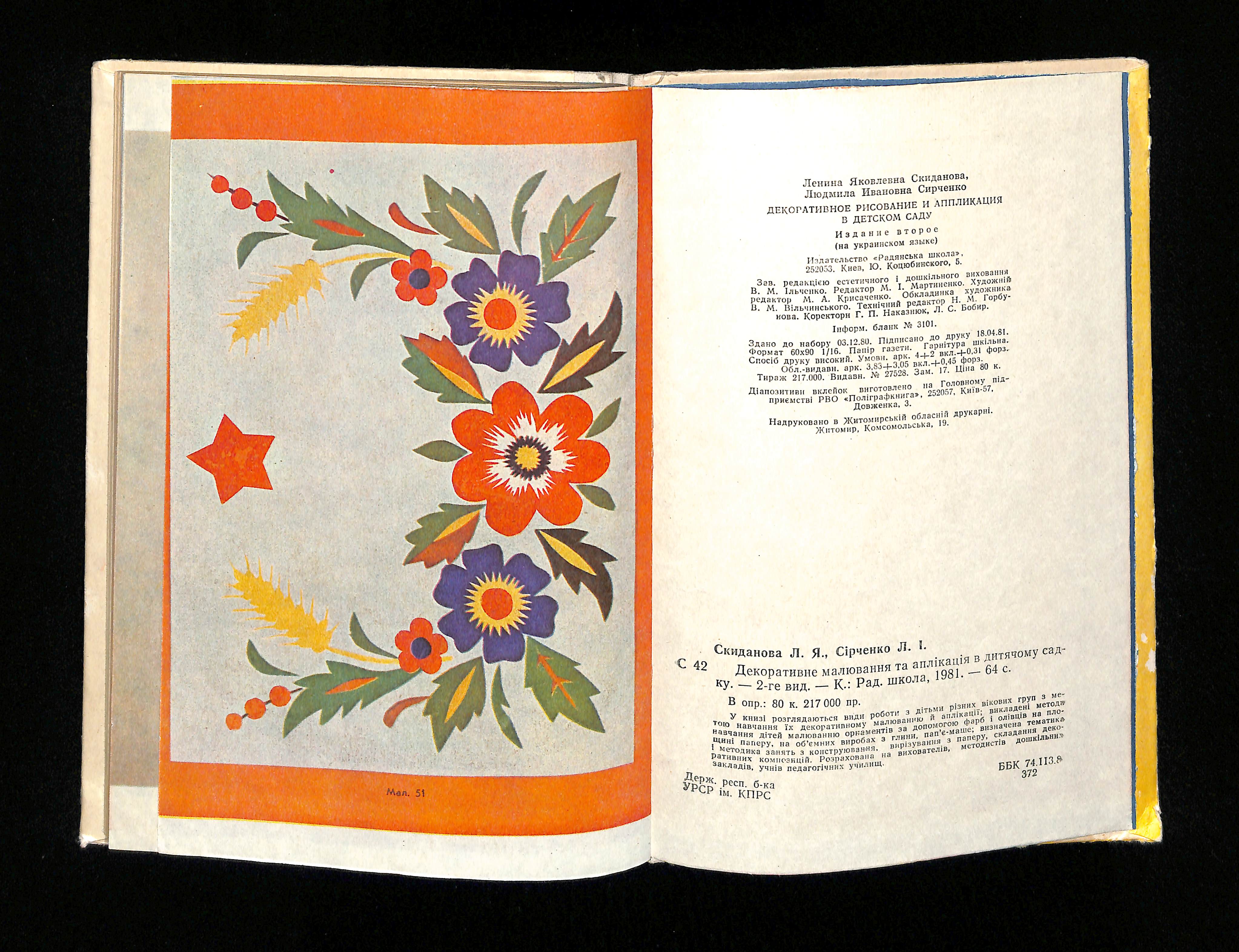 Л. Я. Скиданова, Л. І. Сірченко (1976). Декоративне малювання та аплікація в дитячому садку [Decorative Drawing and Application in Kindergarten]. USSR: Радянська школа.
