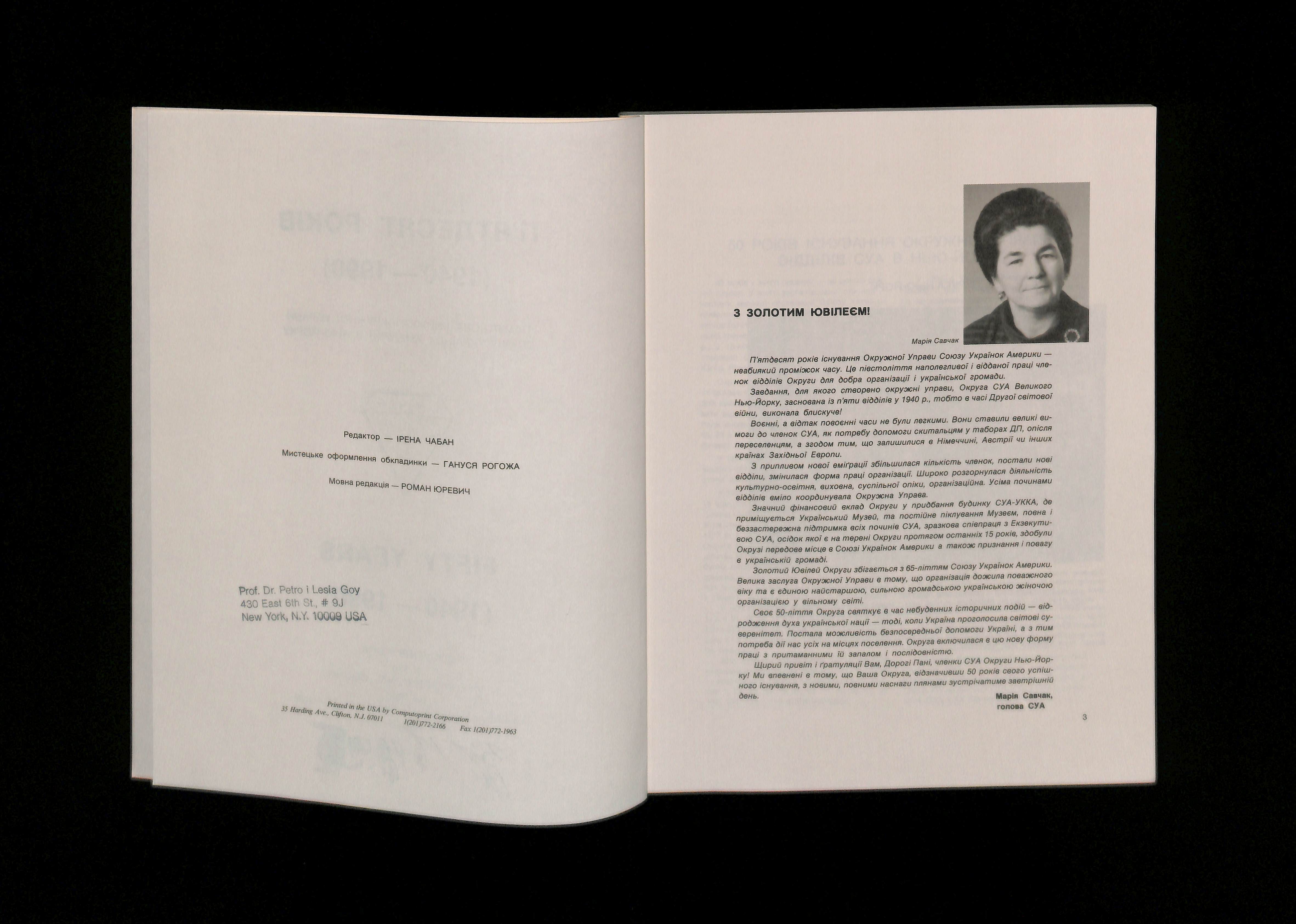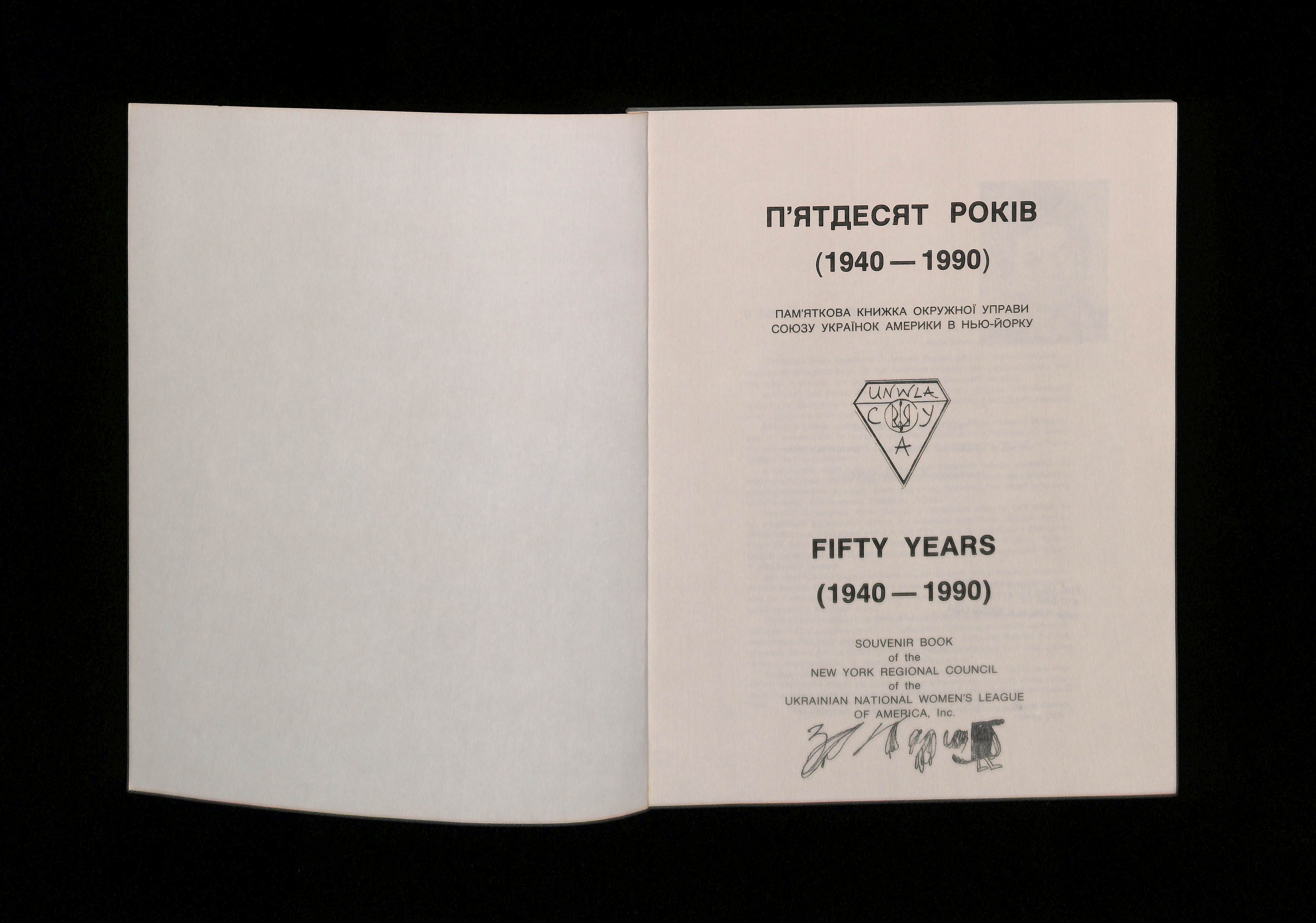 Редактор - Ірена Чабан (Year unknown). Fifty Years (1940-1990). Souvenir Book of the New York Regional Council of the Ukrainian National Women's League of America. USA: Computoprint Corporation.