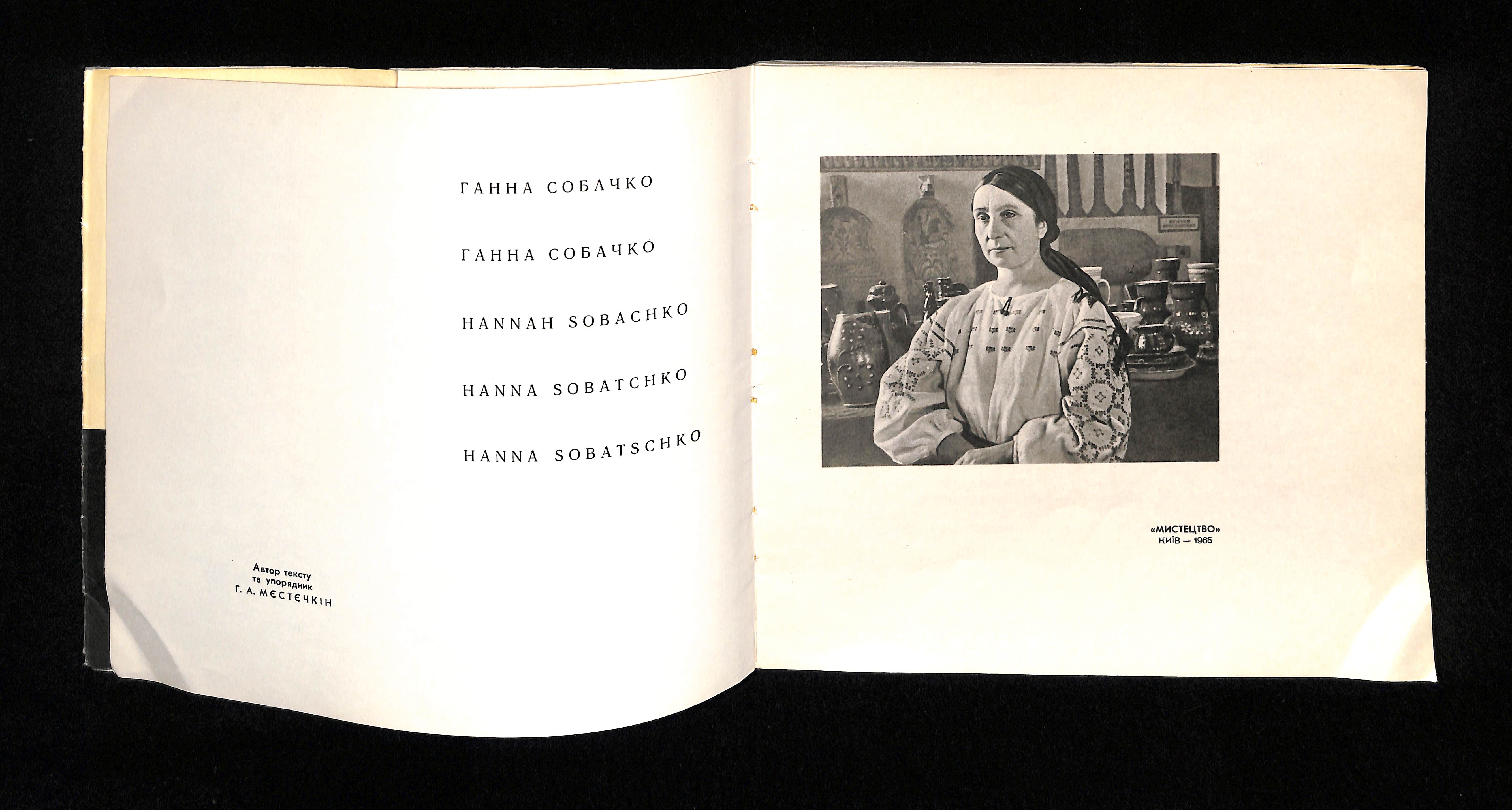 Автор тексту та упорядник Г. А. Мєстєчкін (1965). Ганна Собачко. Майстри народного мистецтва [Hanna Sobachko. Masters of Folk Art]. USSR: Мистецтво.