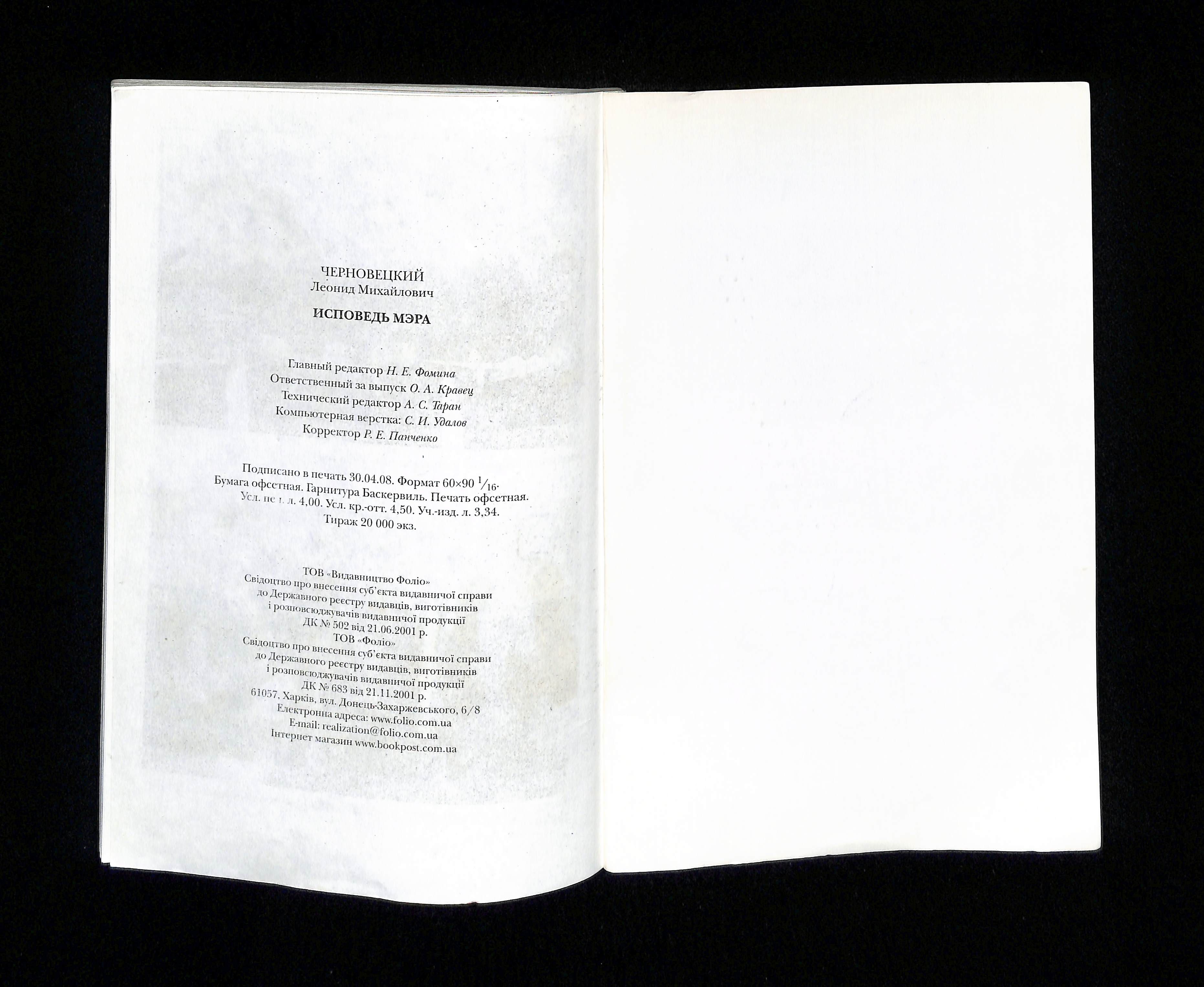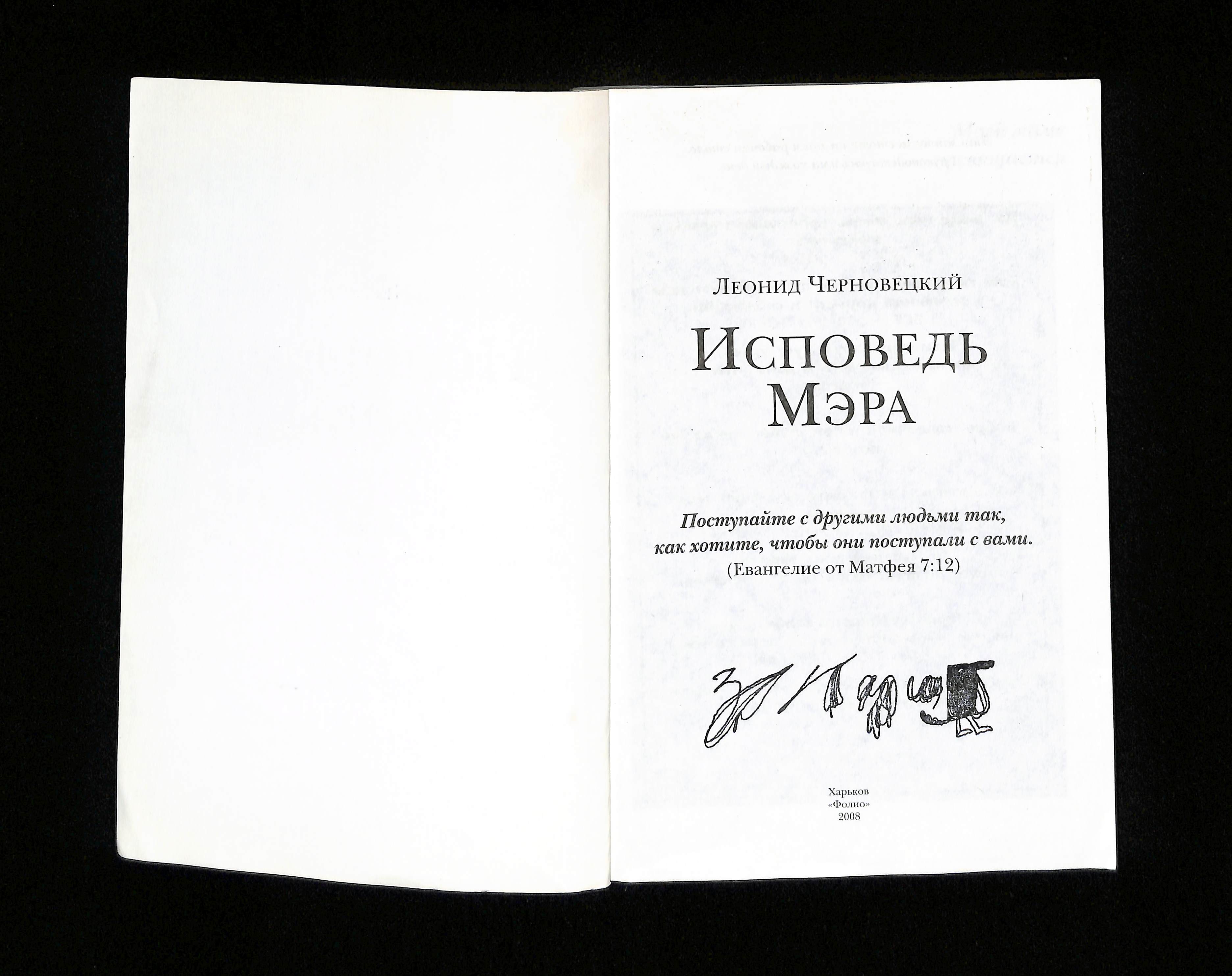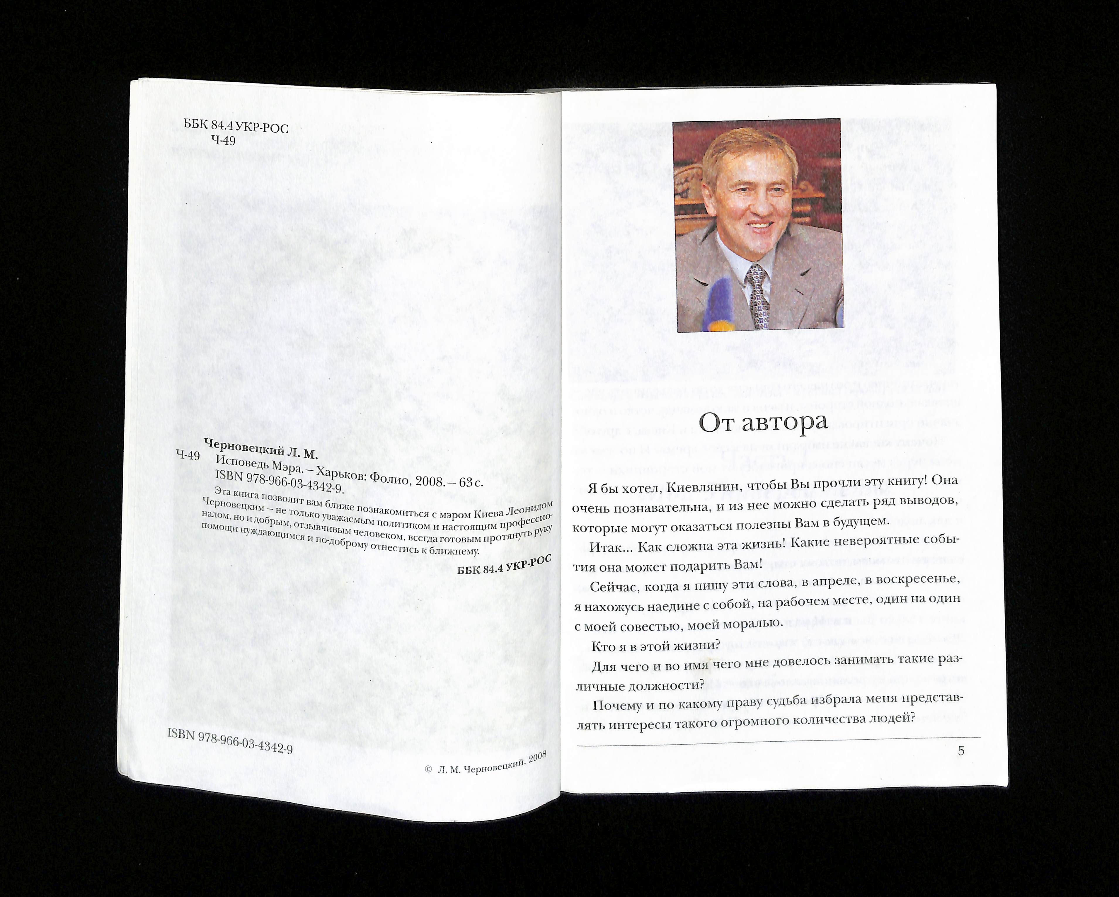 Леонид Черновецкий (2008). Исповедь Мэра [Confession of the Mayor]. Ukraine: Фолио.