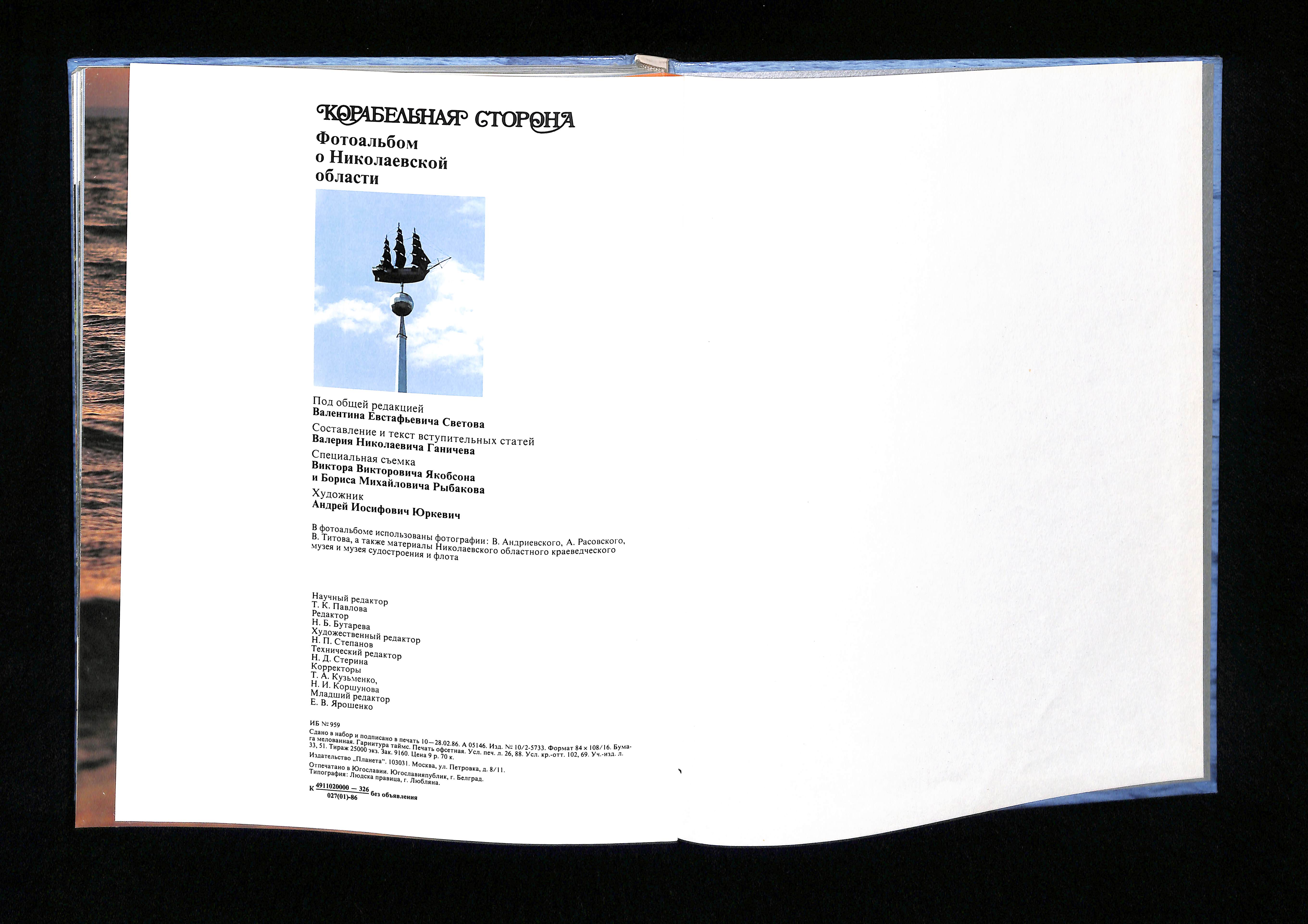 Под общей редакцией В. Е. Светова (1986). Корабельная сторона. Фотоальбом о Николаевской области [Ship's side. Photo Album about Mykolayiv Region]. USSR: Планета.