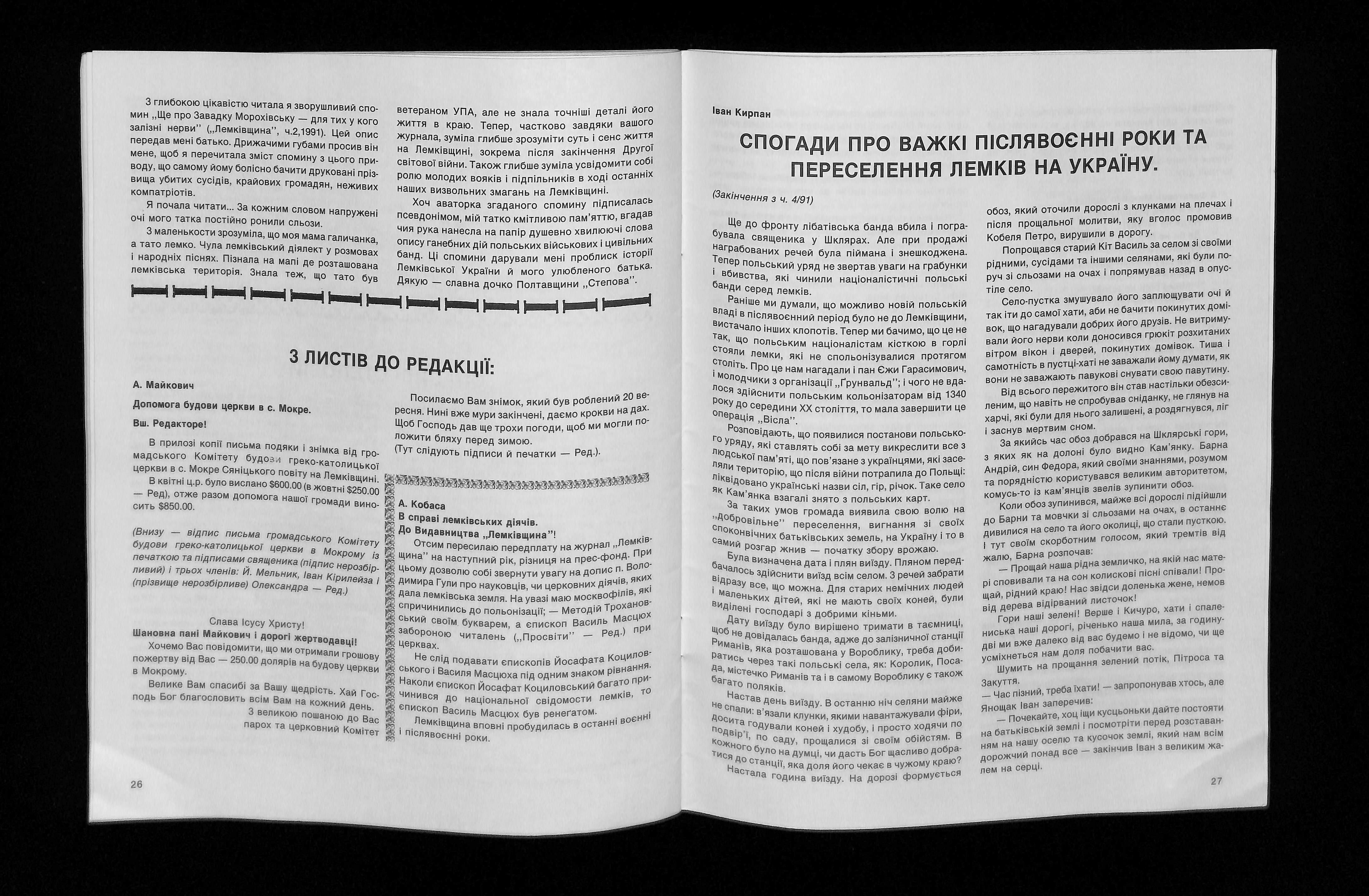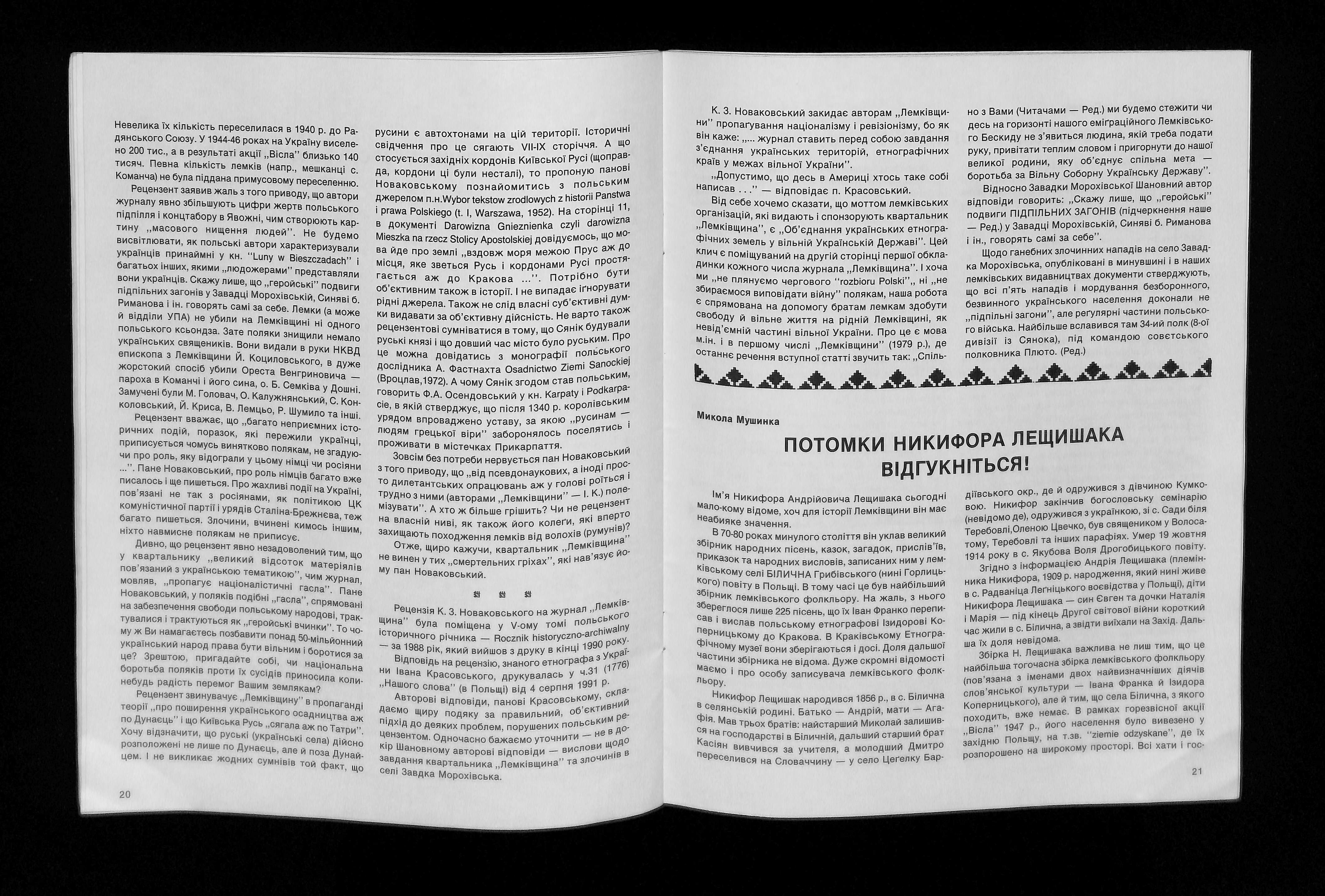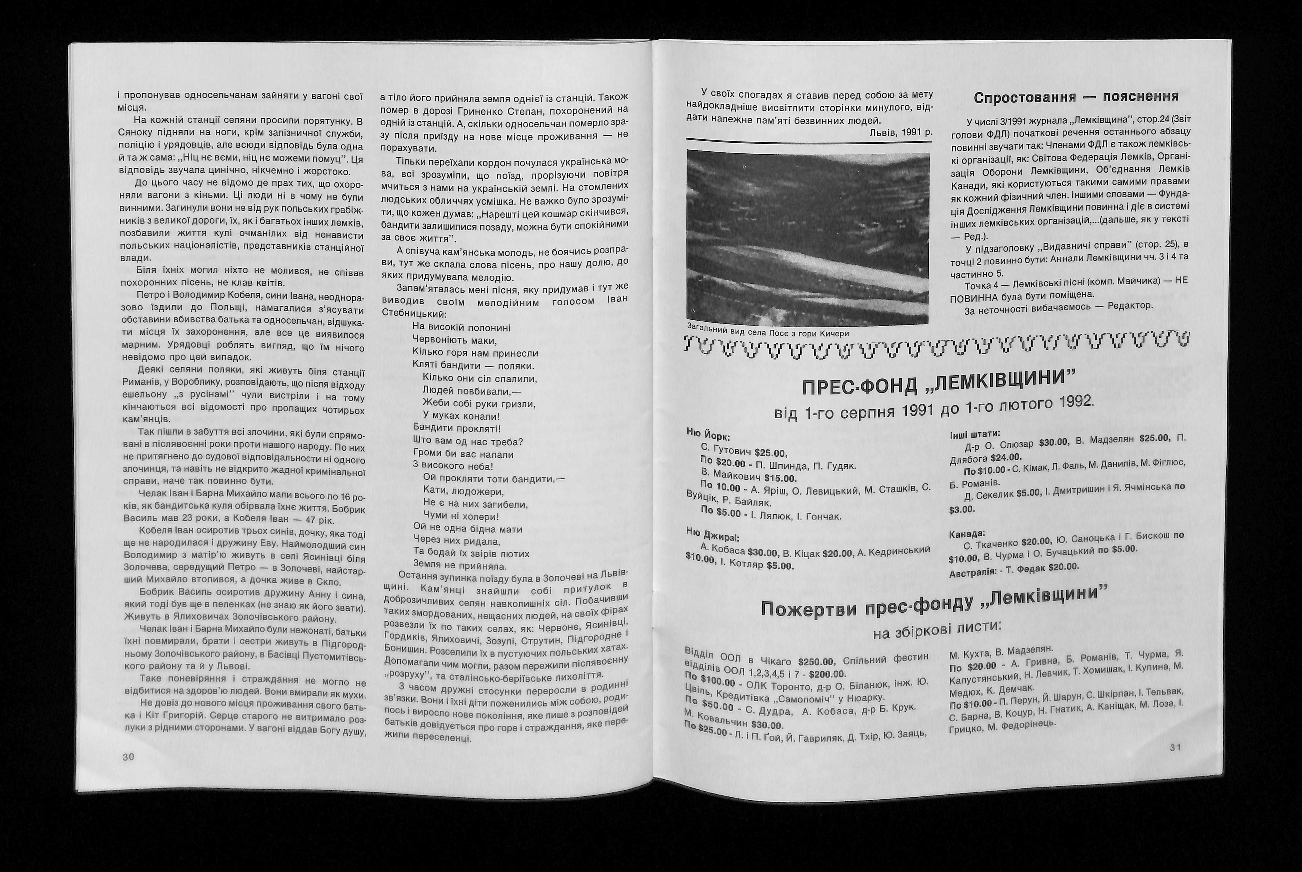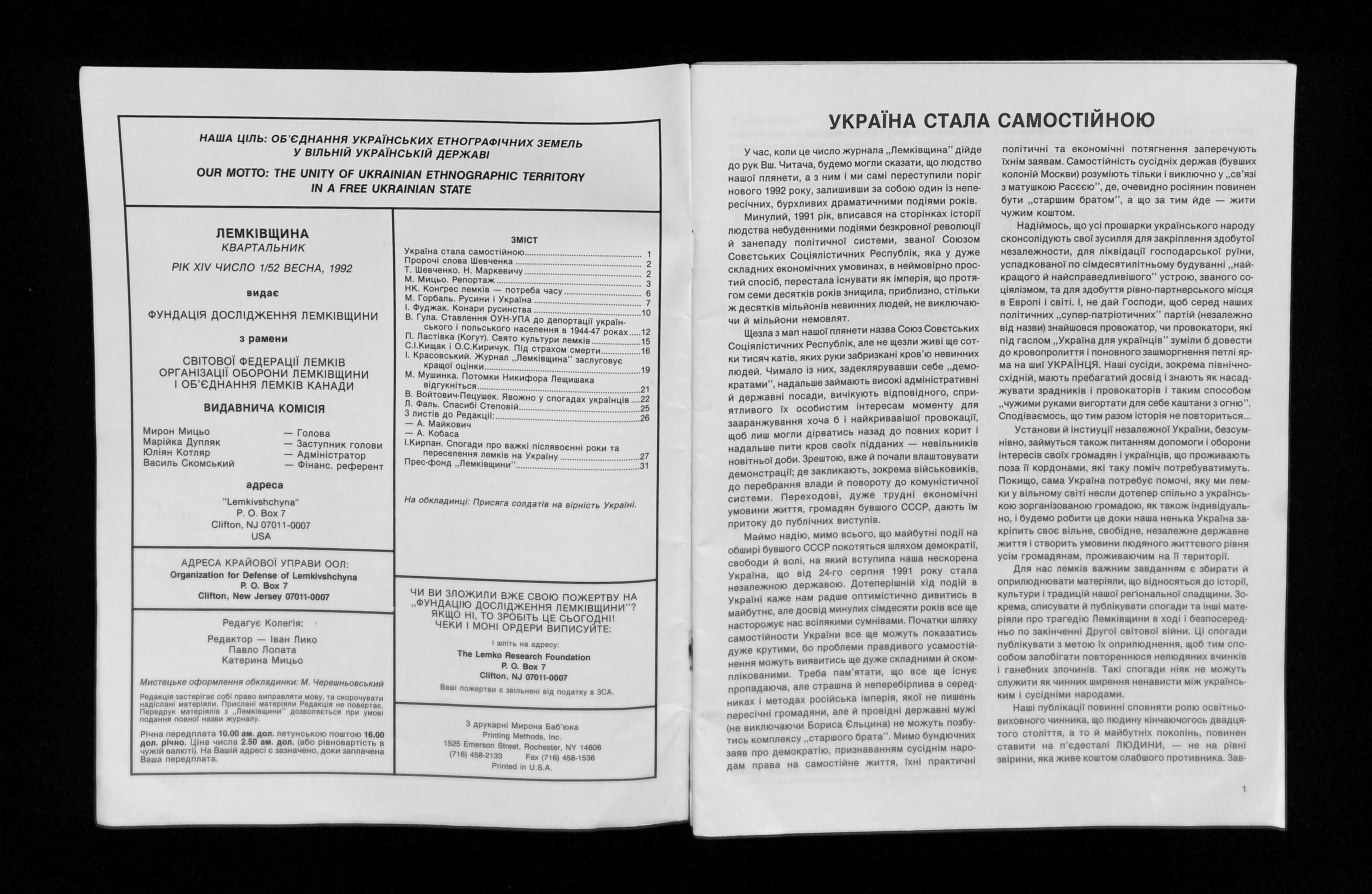 Редактори: Іван Лико, Павло Лопата, Катерина Мицьо (1992). Лемківщина 1992. Ч 1 [Lemkivshchyna 1992. Part 1]. USA: Published by The Lemko Research Foundation.