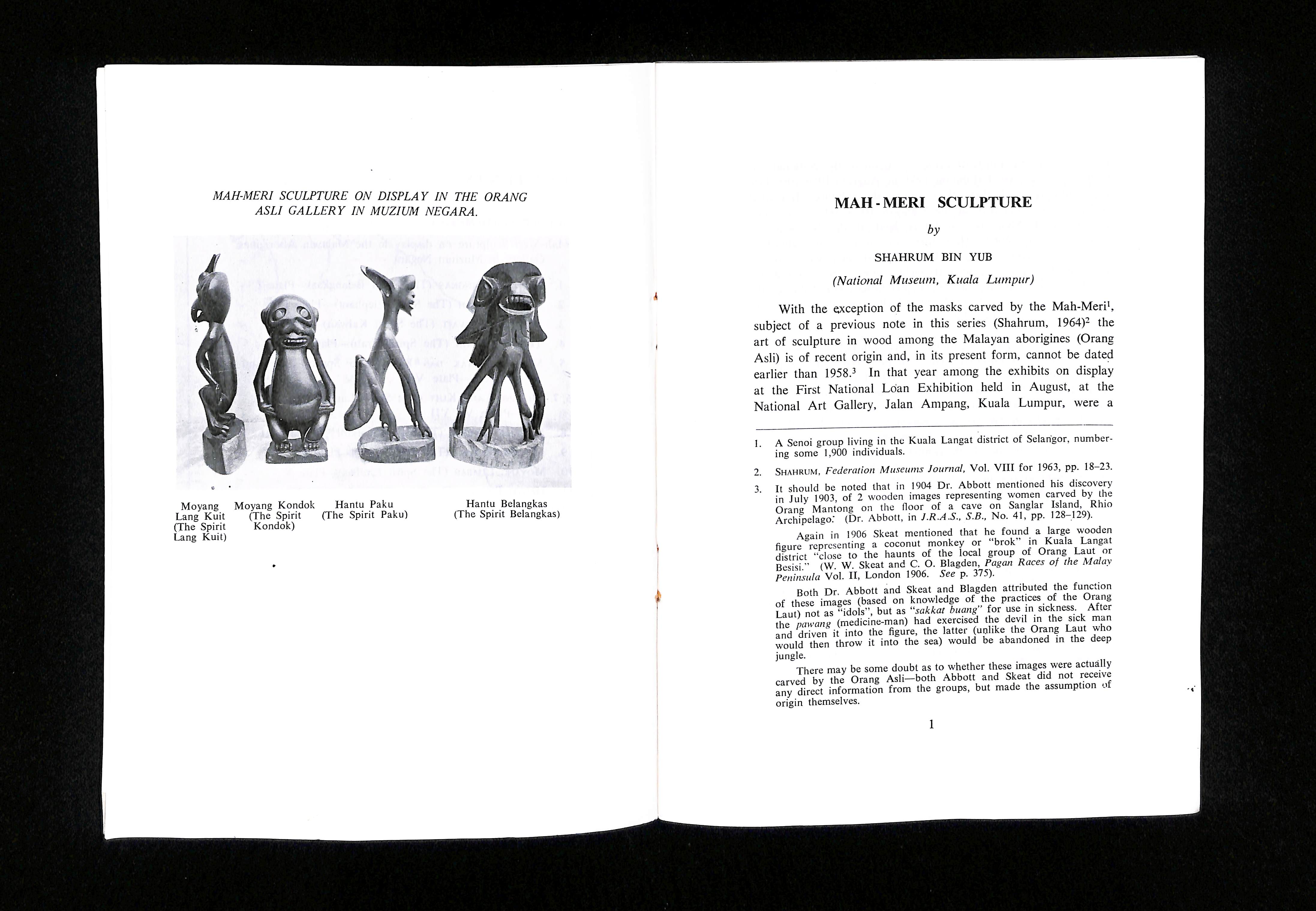 Shahrum bin Yub (1980). Mah Meri Sculpture. Malaysia: Published by the Department of Museums.
