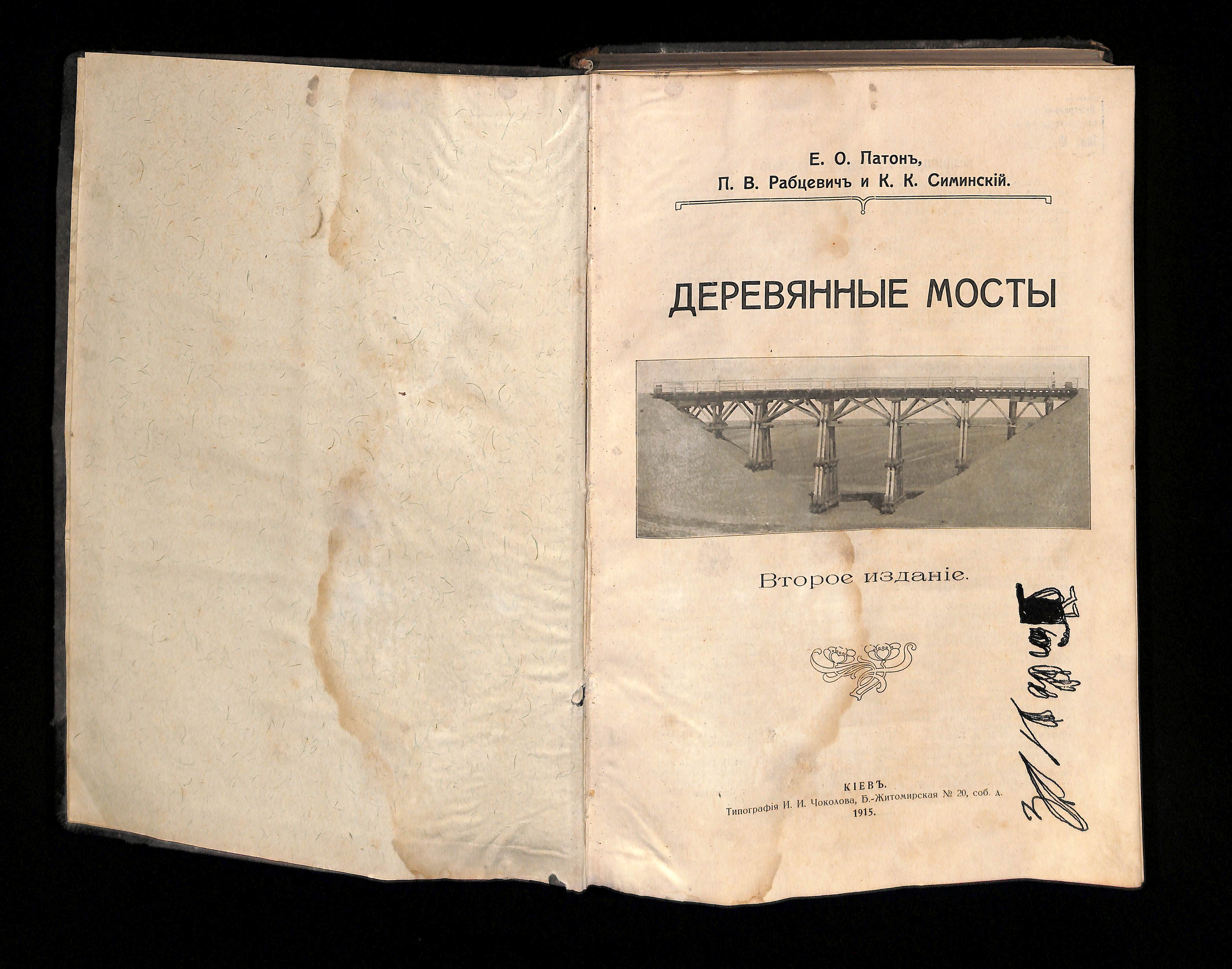 Е. О. Патонь, П. В. Рабцевичь, К. К. Симинскій (1915). Деревянные мосты [Wooden bridges]. Russian Empire: Типография И. И. Чоколова, Б.-Житомирская № 20.