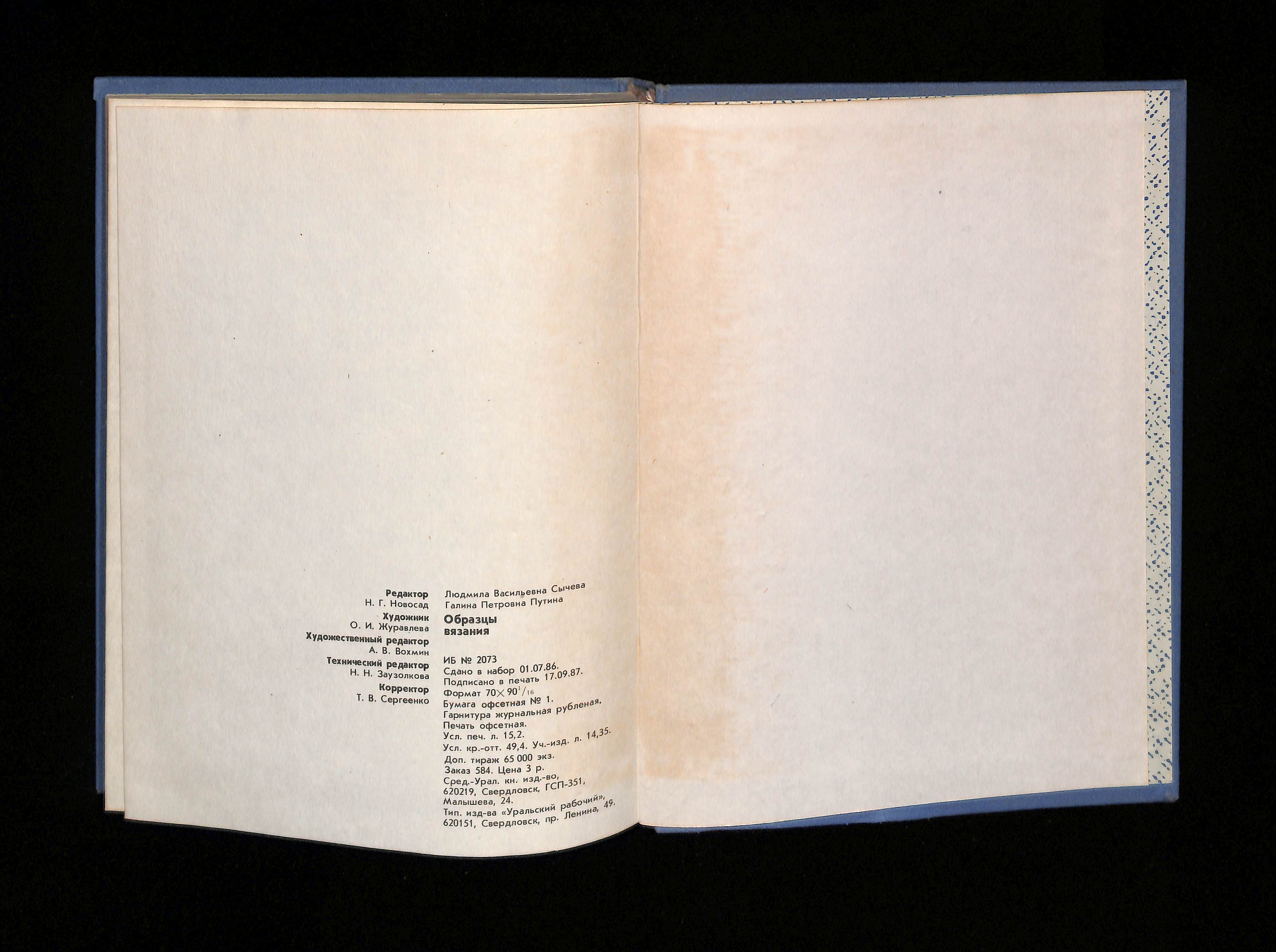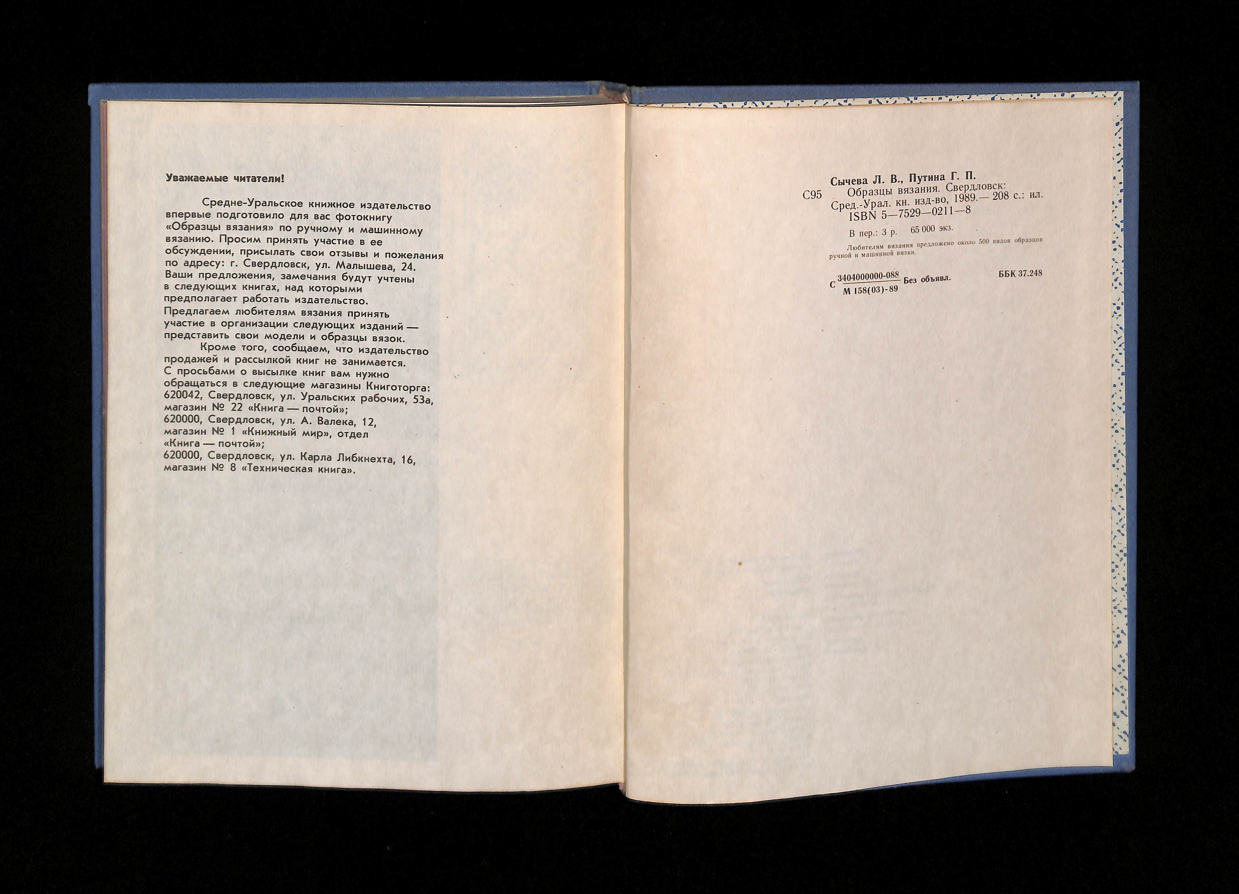 Л. В. Сычева, Г. П. Путина (1989). Образцы вязания [Knitting patterns]. USSR: Средне-Уральское книжное издательство.