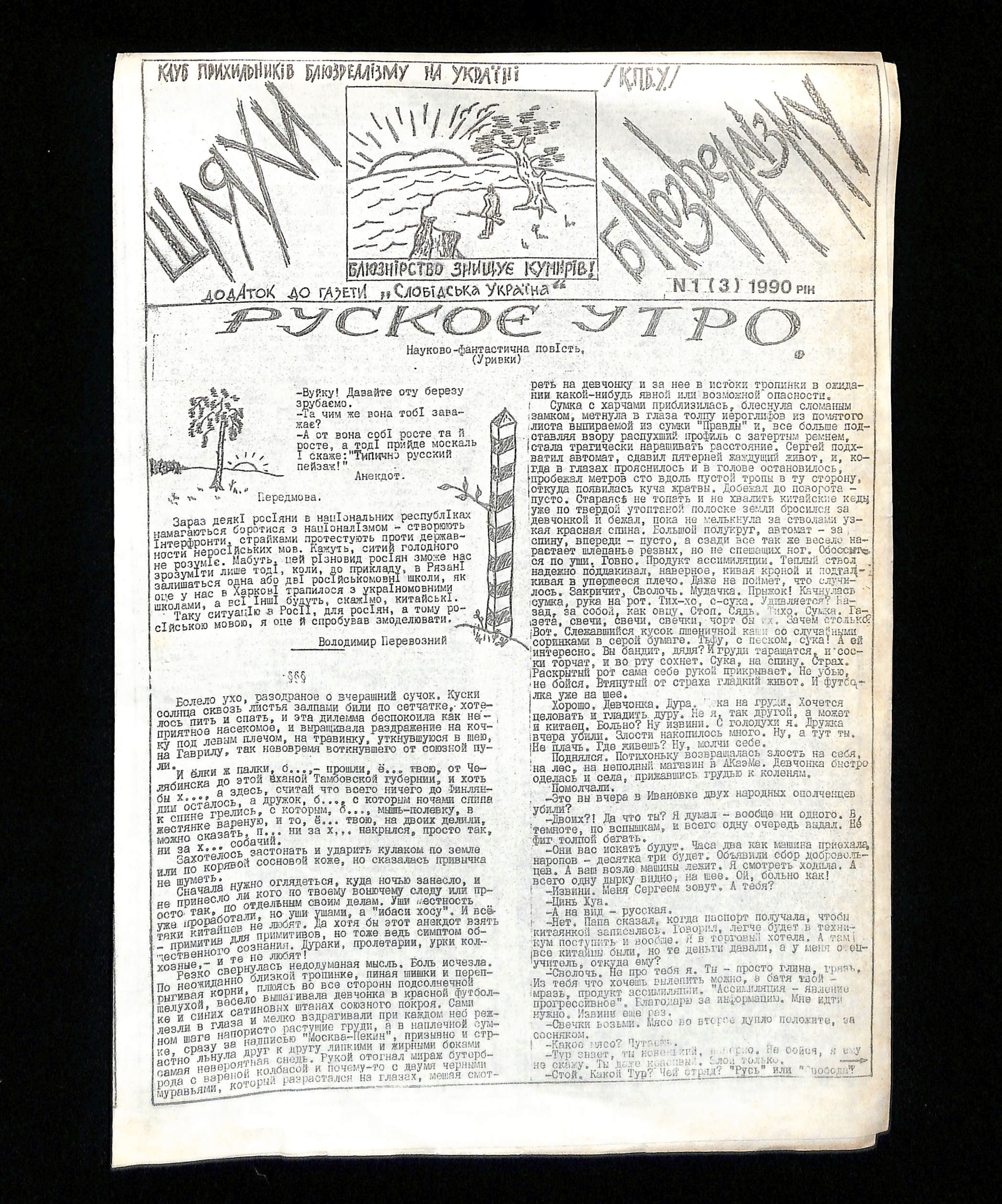 Author unknown (1990). Шляхи блюзреалізму. Додаток до газети "Слобідська Україна" [Ways of blues realism. Supplement to the newspaper "Slobidska Ukraina"]. USSR: Publisher unknown.