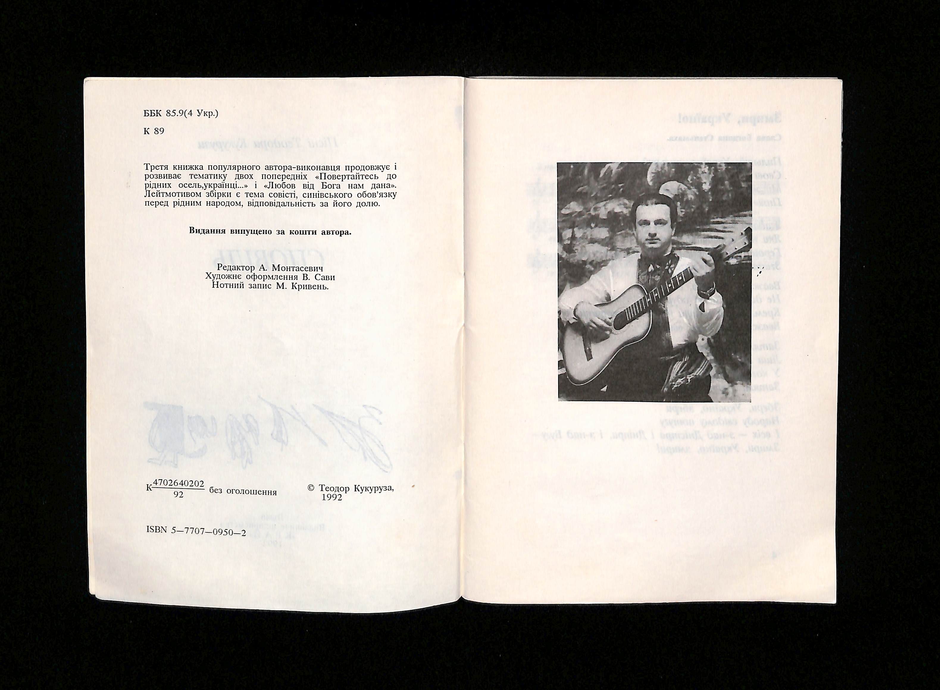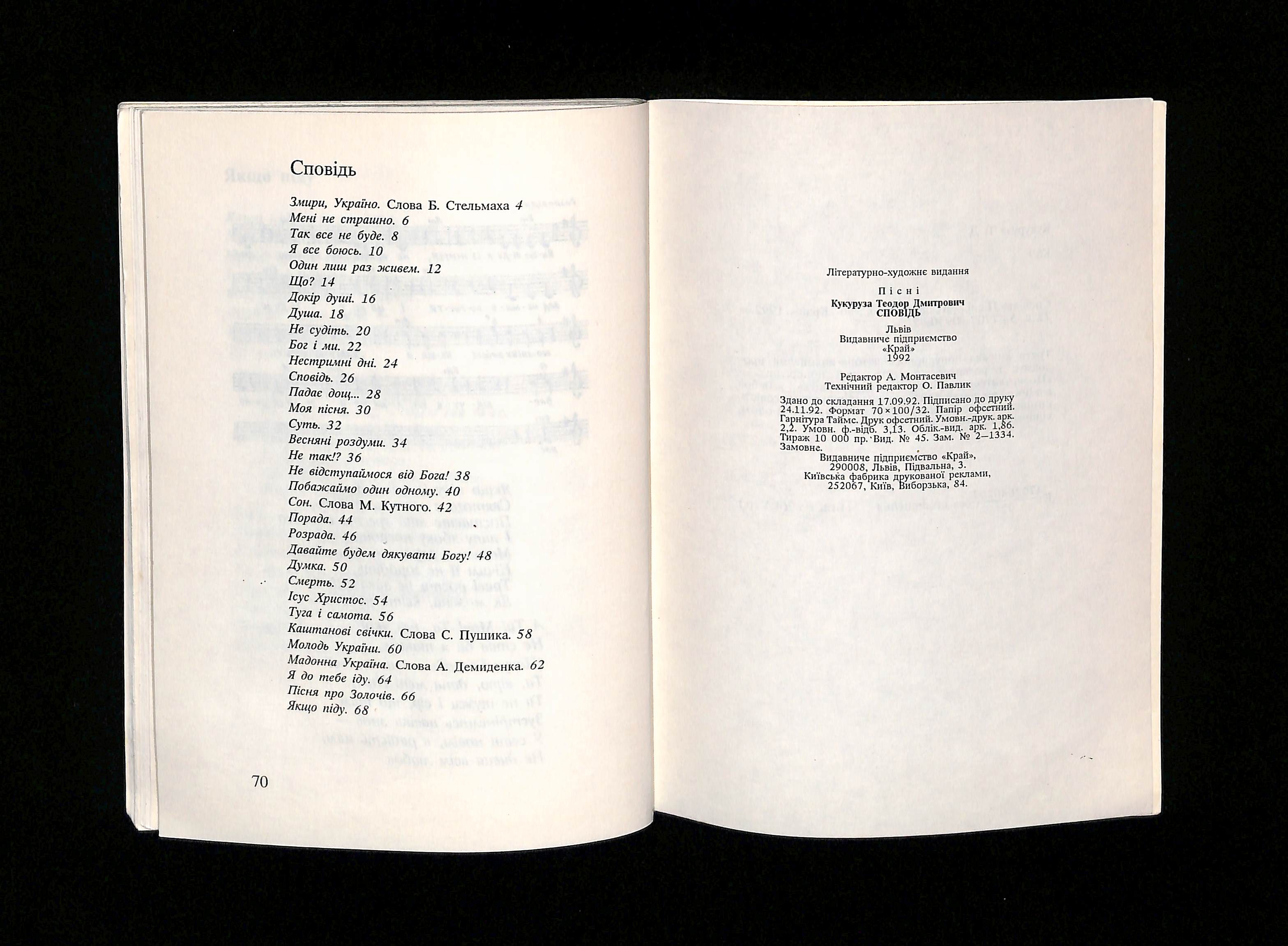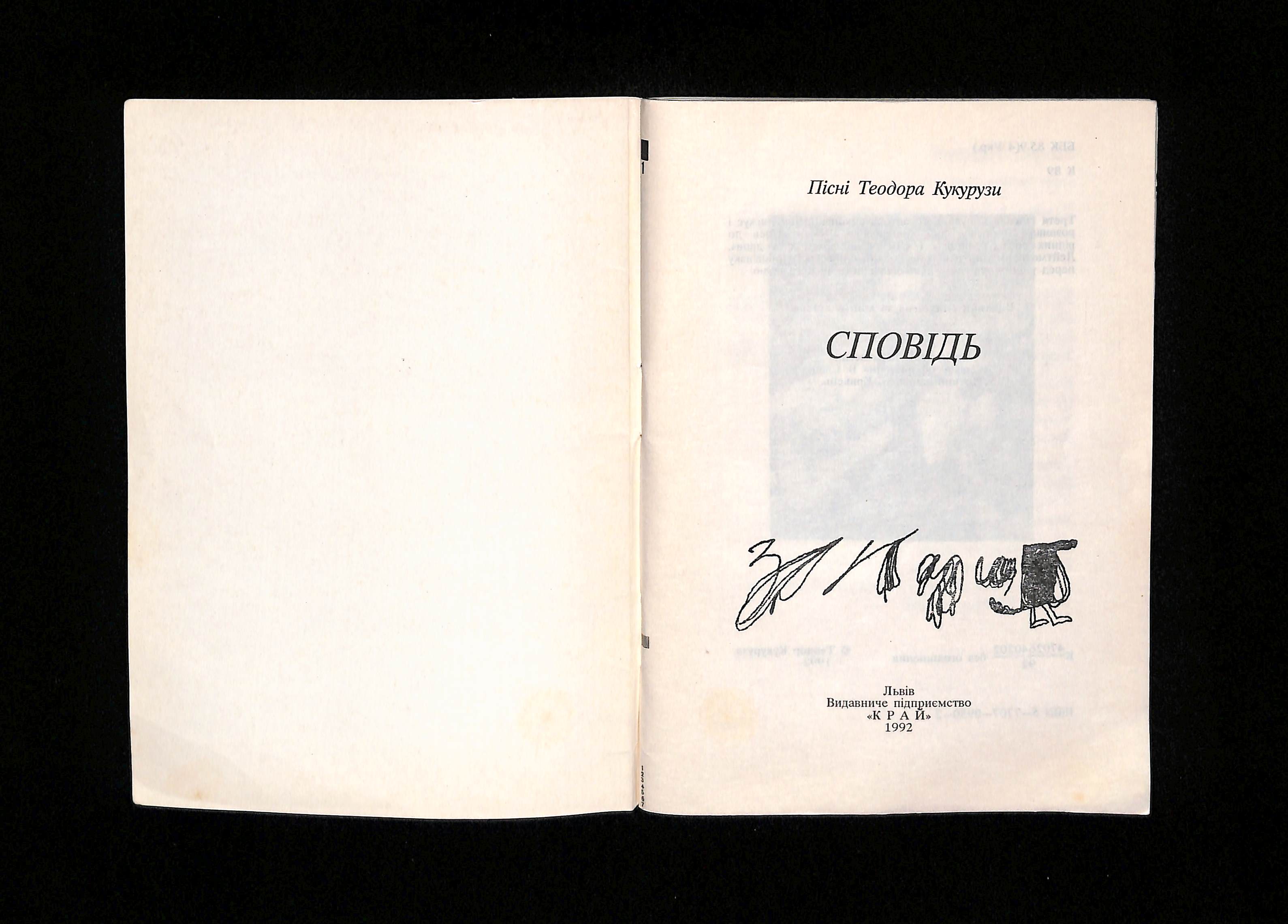 Пісні Теодора Кукурузи (1992). Сповідь [Confession]. Ukraine: Край.