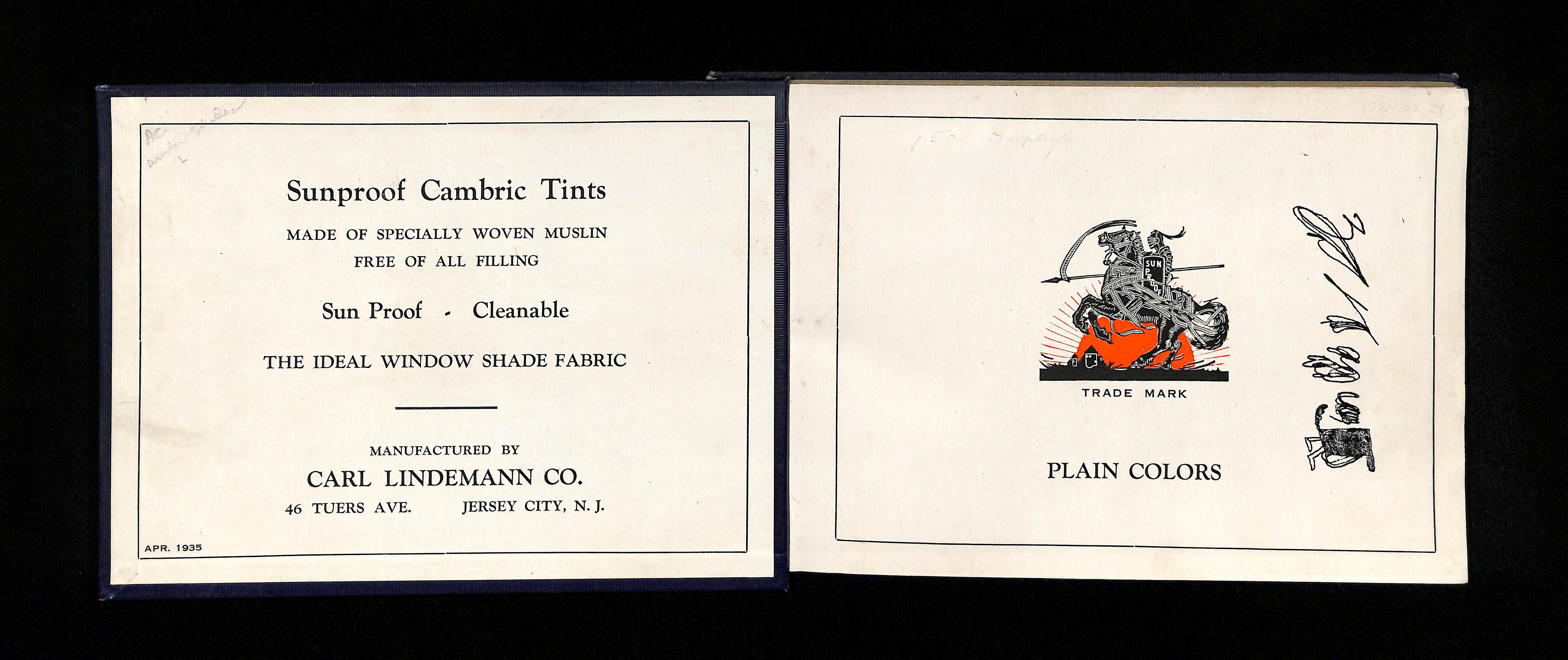 Author unknown (1935). Sunproof Cambric Tints. USA: Publisher unknown.