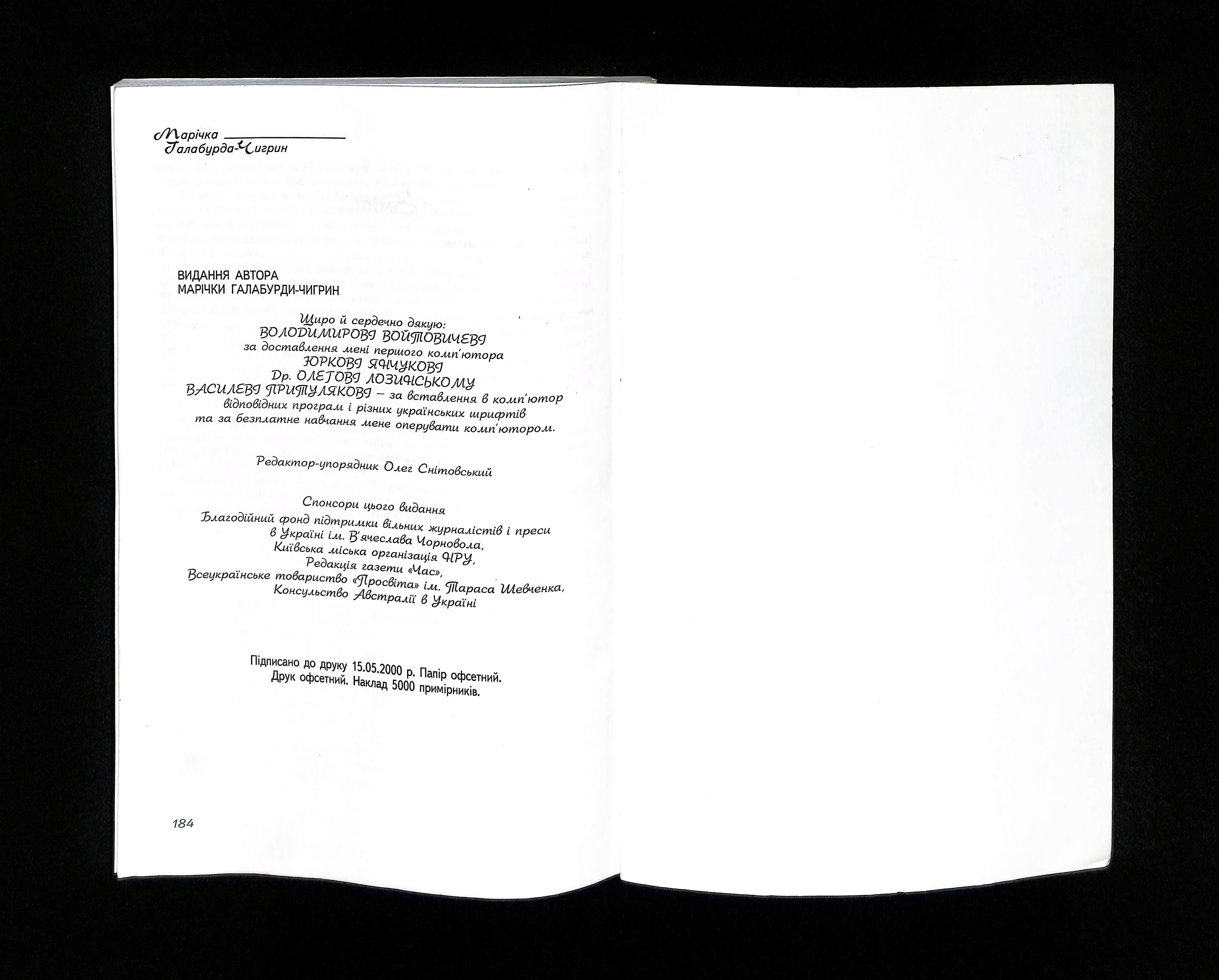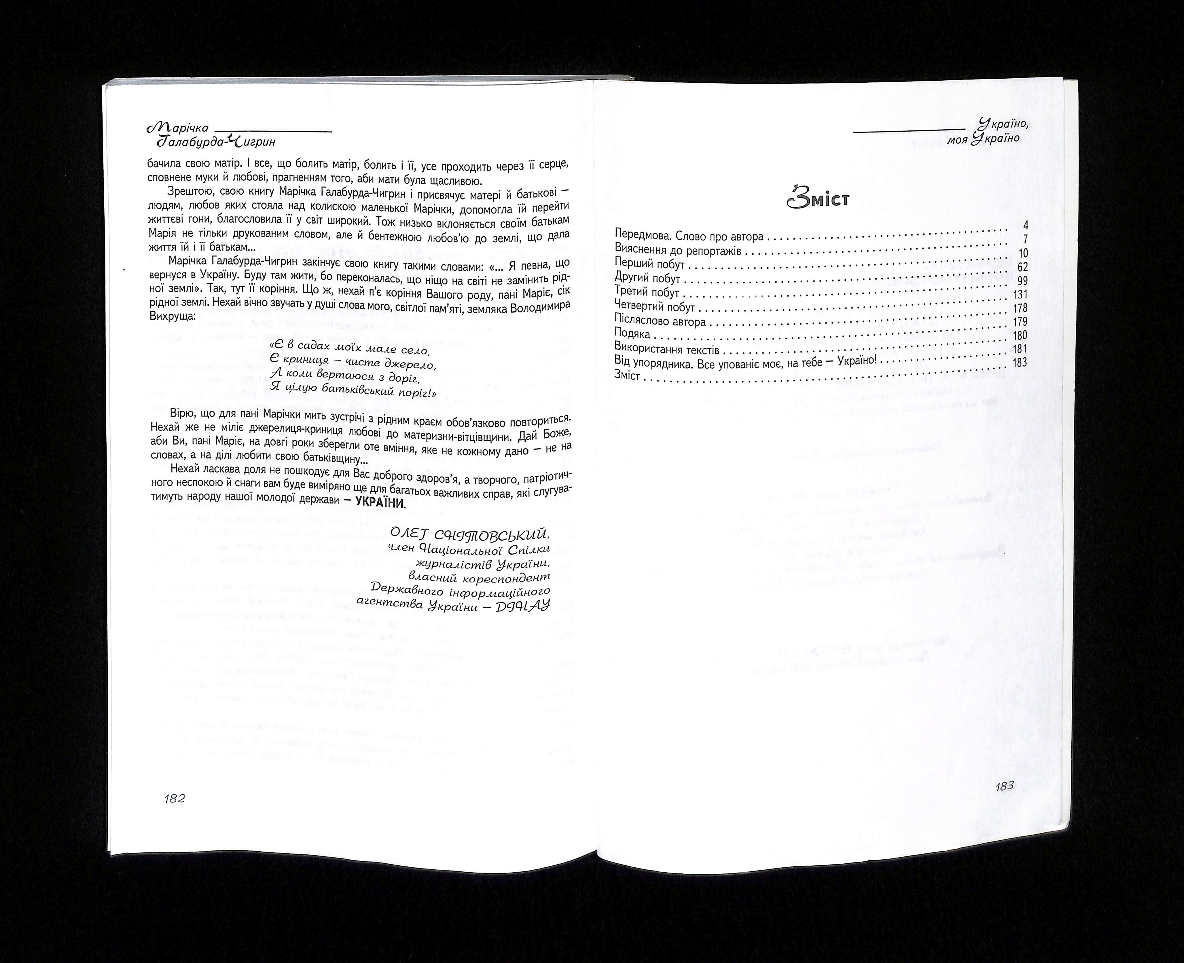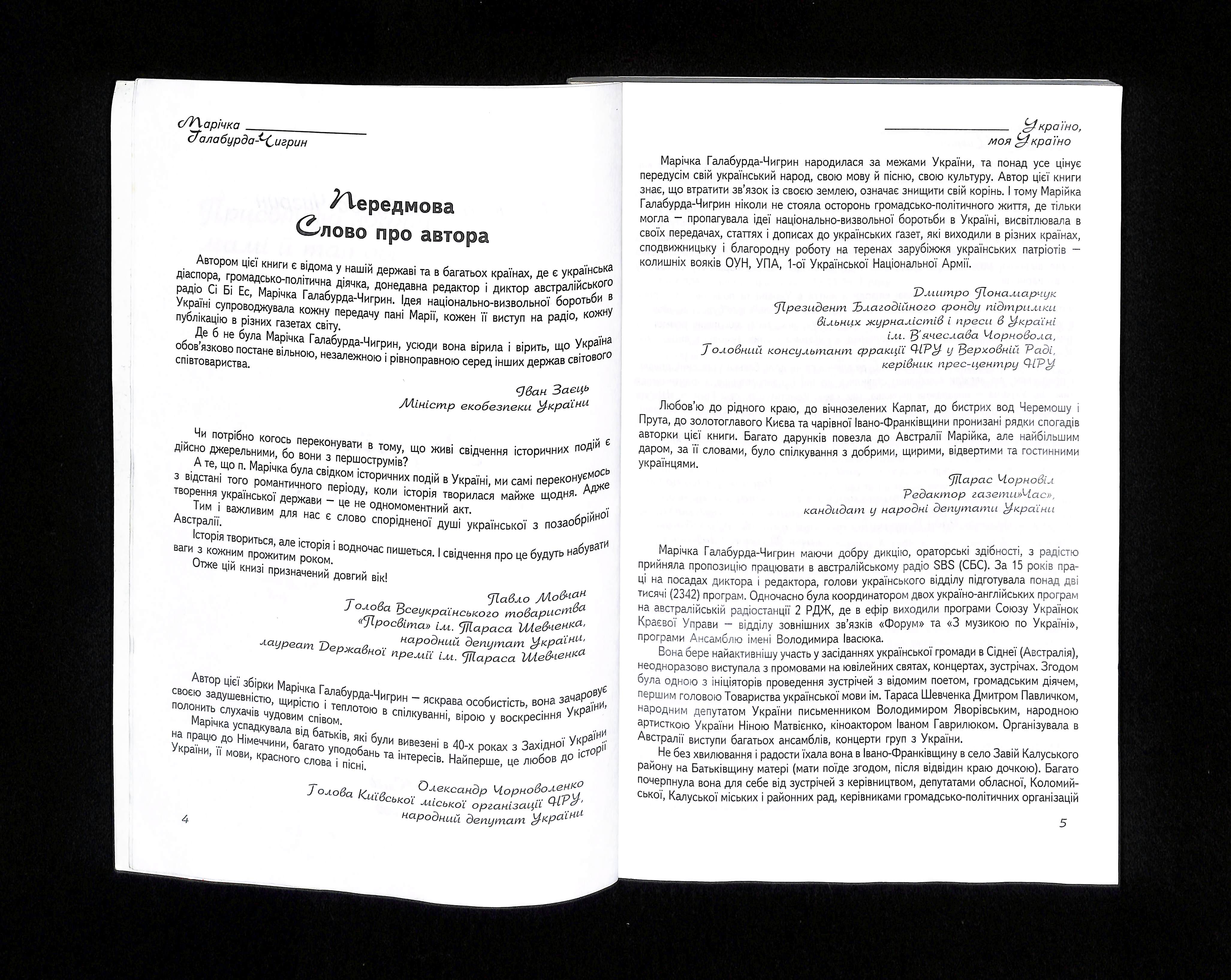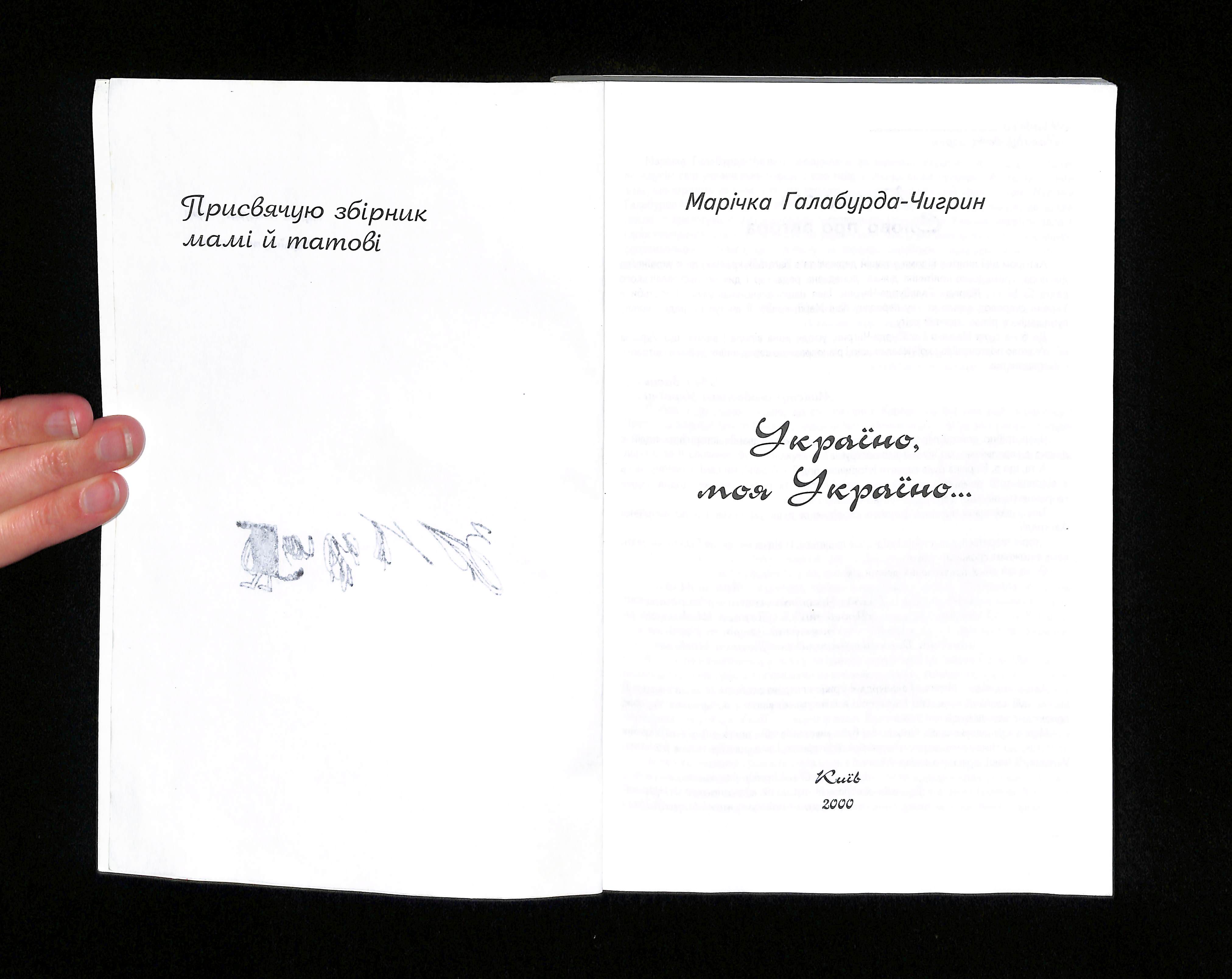 Марічка Галабурда-Чигрин (2000). Україно, моя Україно [Ukraine, My Ukraine]. Ukraine: Publisher unknown.